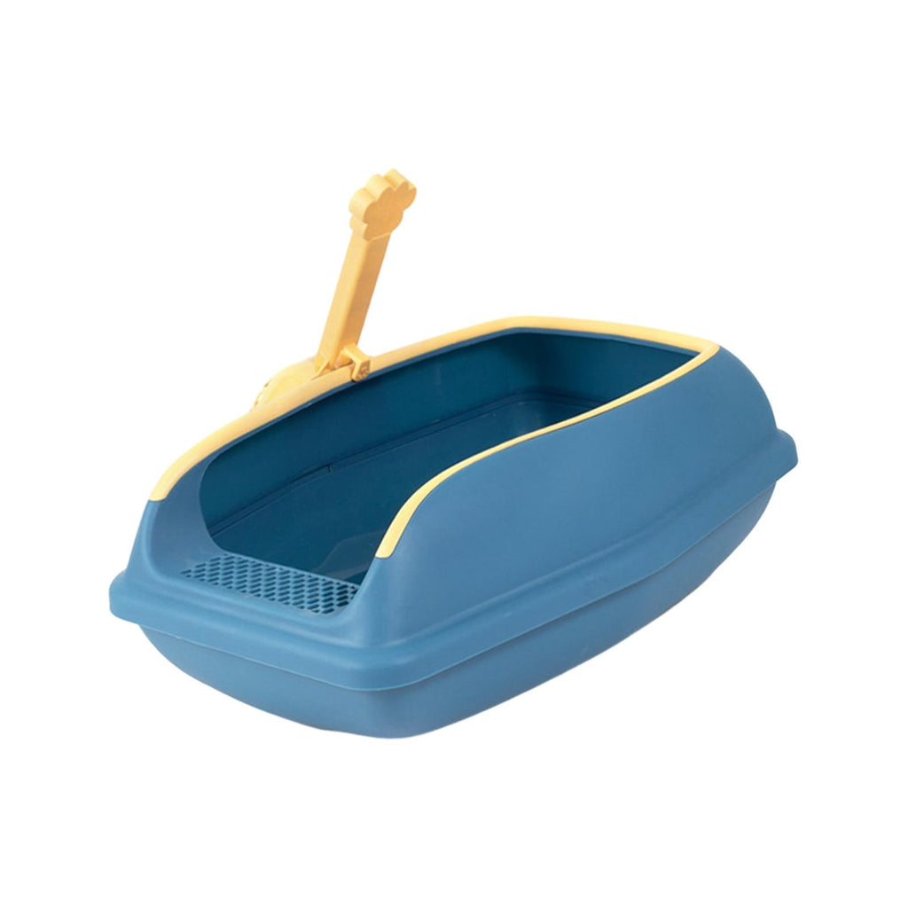 Maxbell Open Top Cat Litter Box Compact Cat Sand Box Easy to Clean Durable for Small Animals L Blue