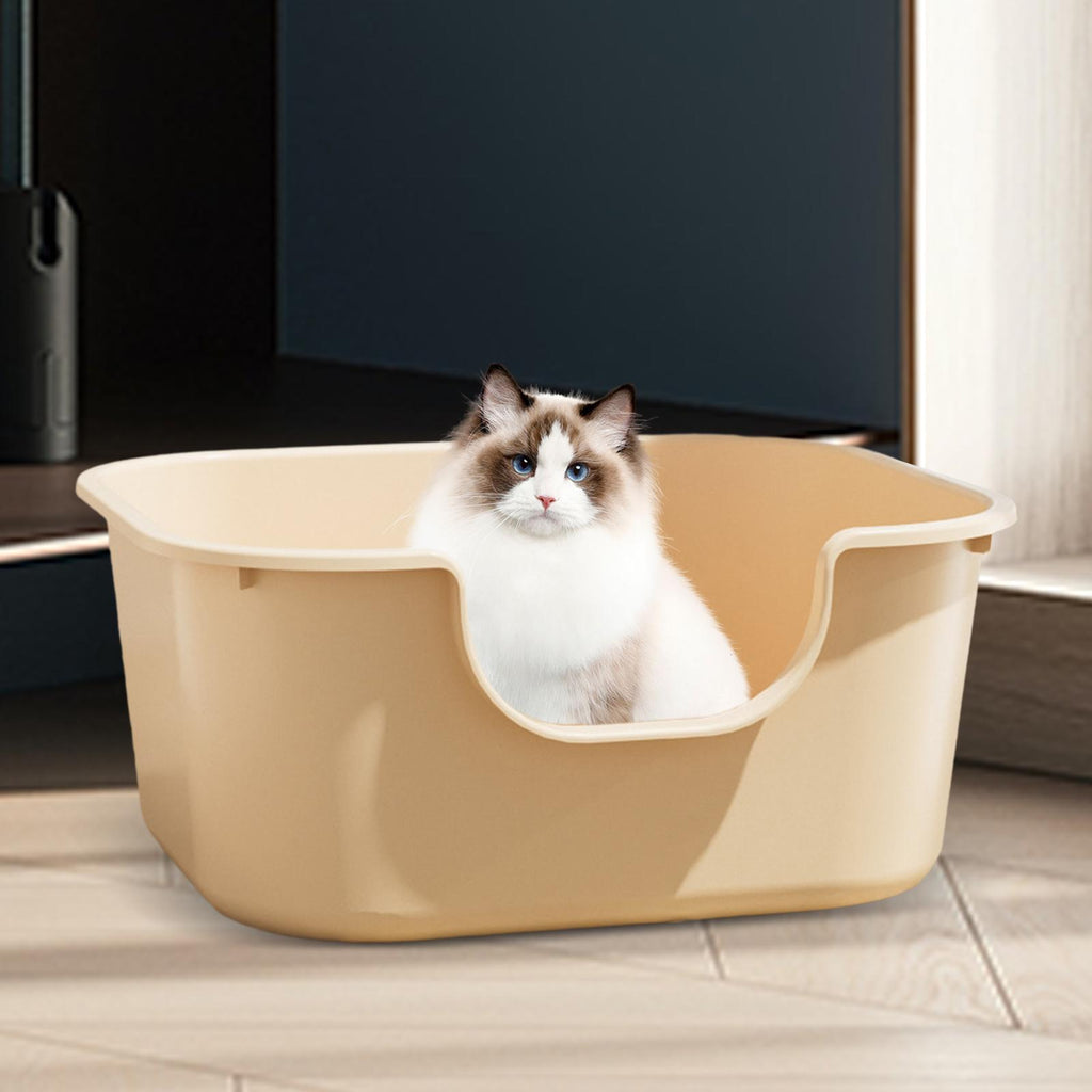 Maxbell Open Top Cat Litter Tray Splashproof Portable Pet Litter Tray for Small Pets Milk coffee