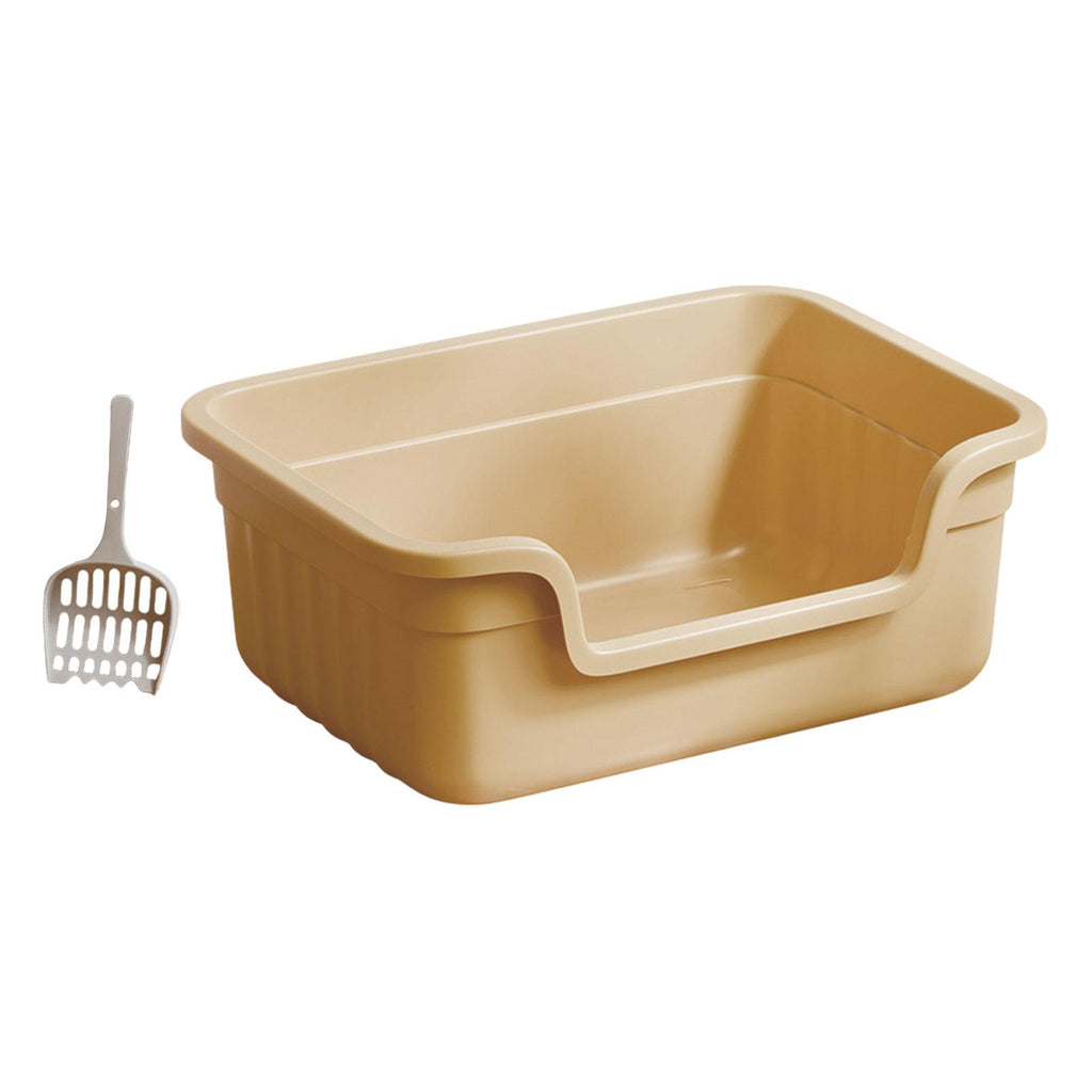 Maxbell Open Top Pet Litter Box Cats Toilet Kitty Litter Pan for Small and Large Cats Beige