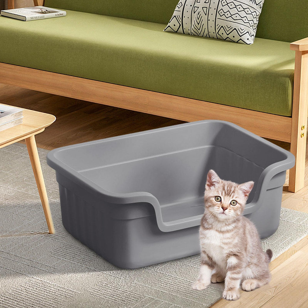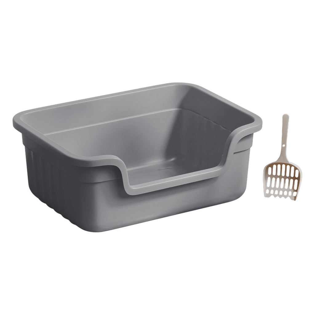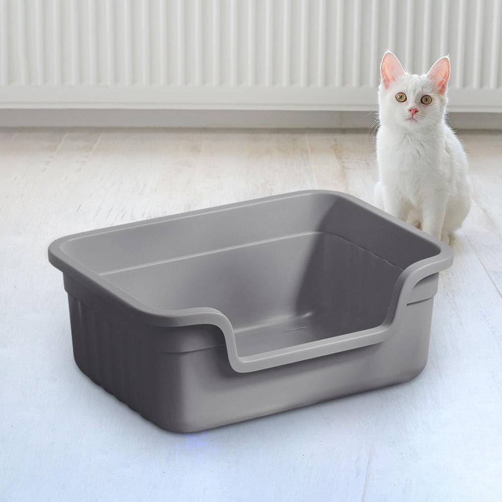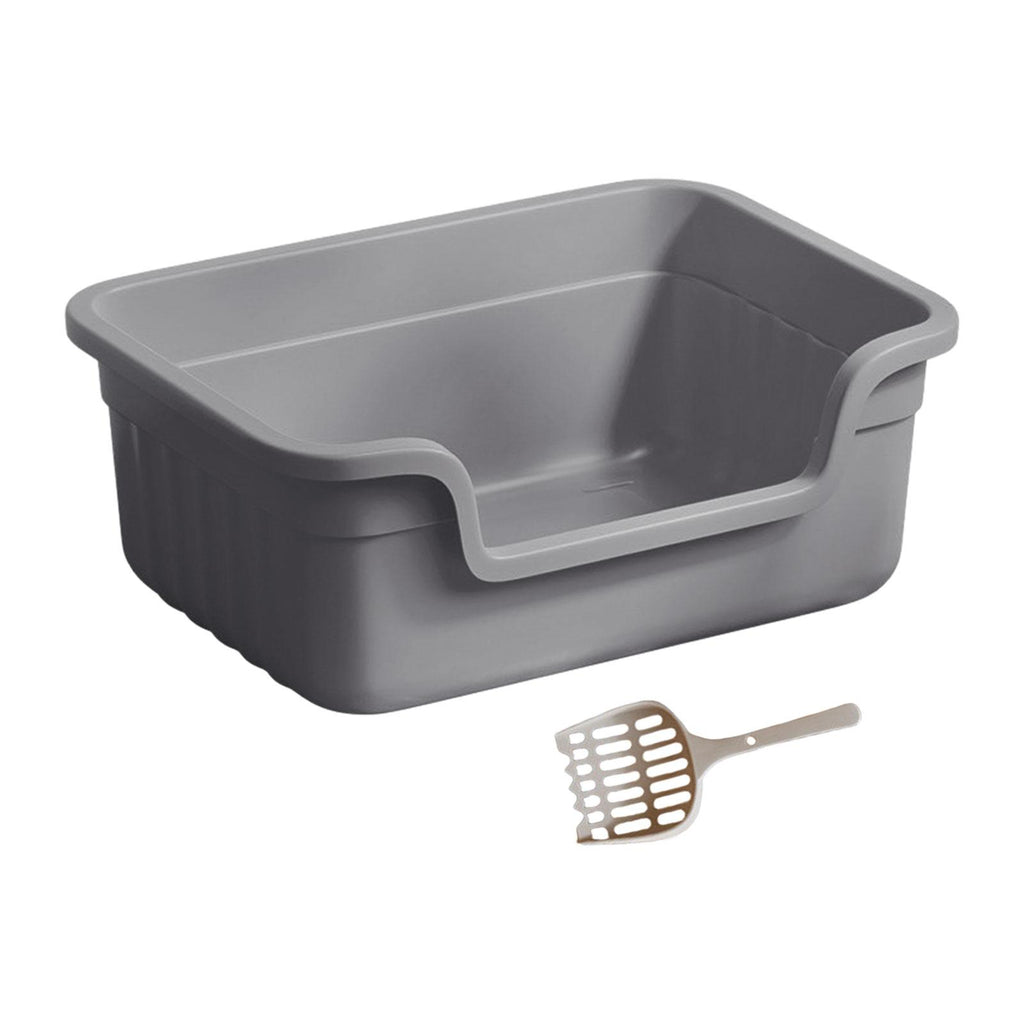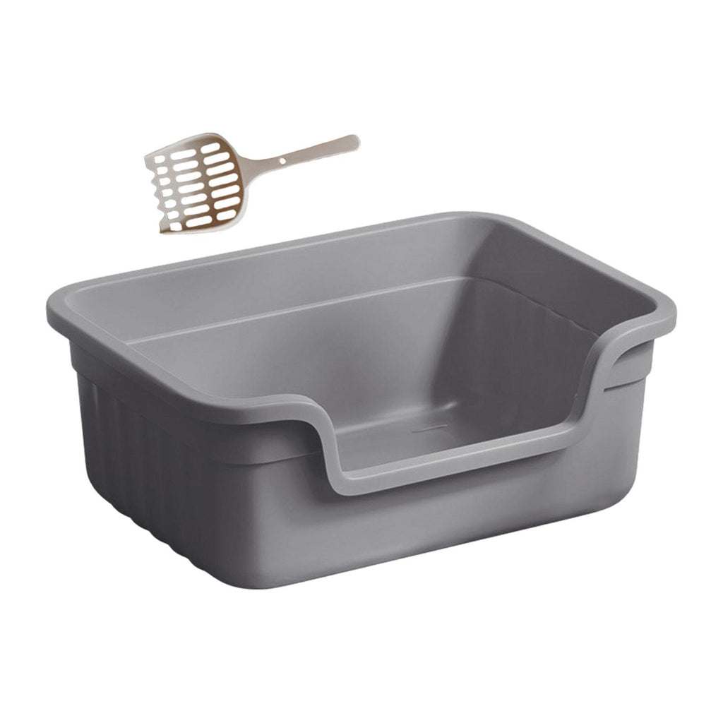 Maxbell Open Top Pet Litter Box Cats Toilet Kitty Litter Pan for Small and Large Cats Gray