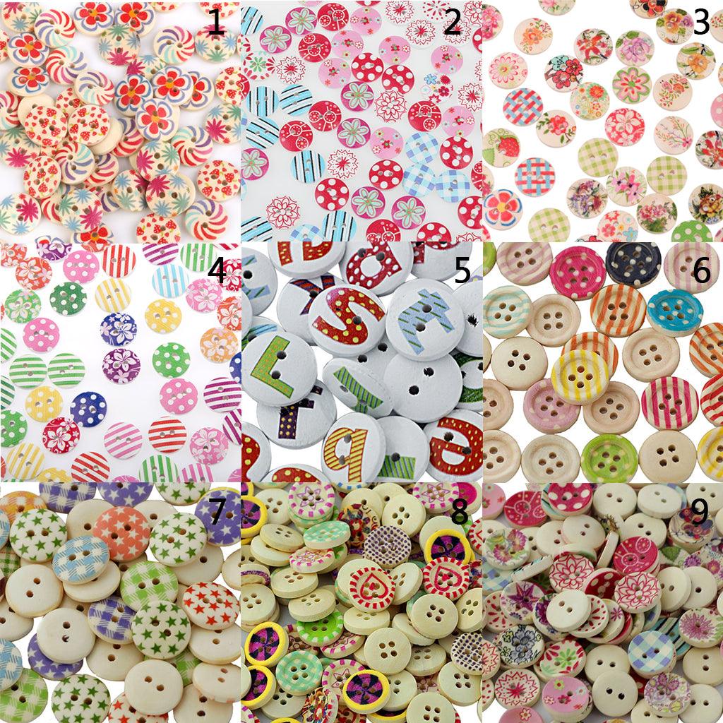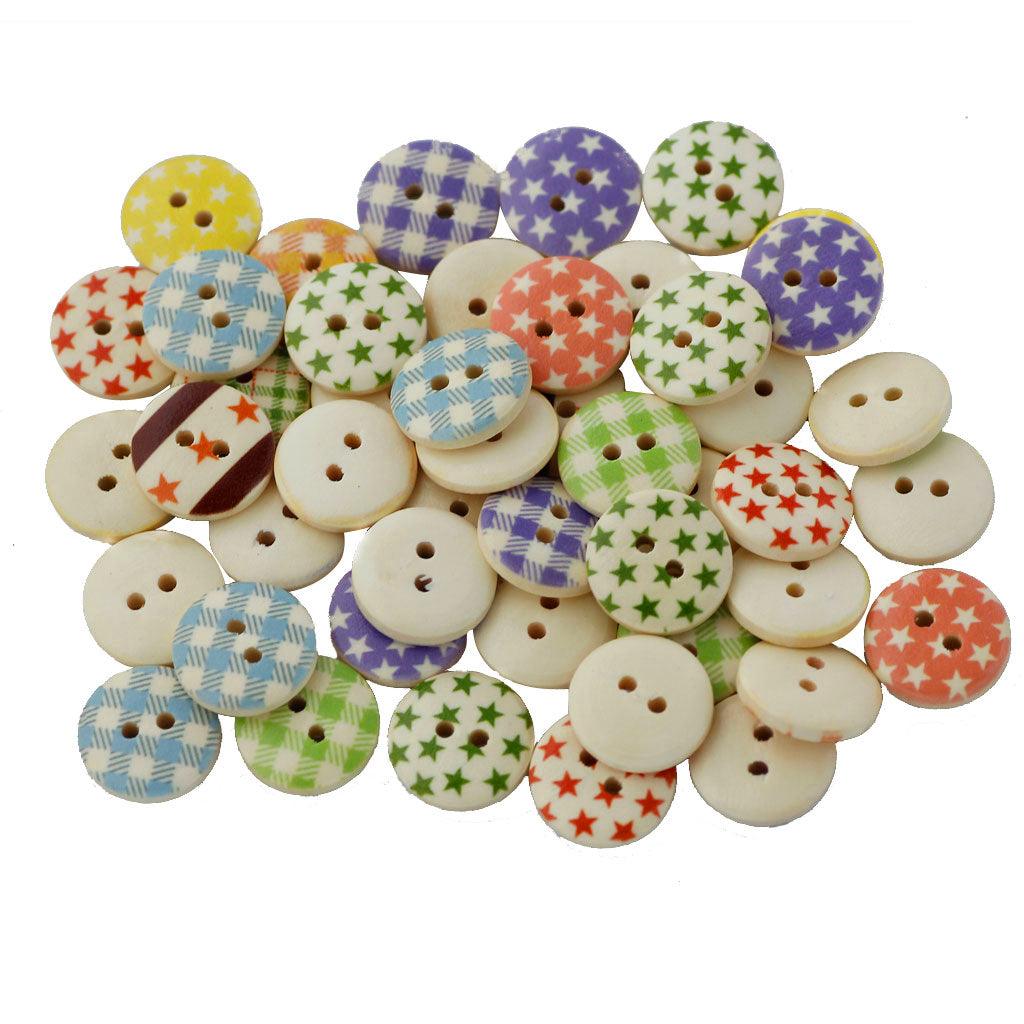 Maxbell Pack of 100 Round Shaped Star Painted 2 Hole Wooden Sewing Buttons for Craft