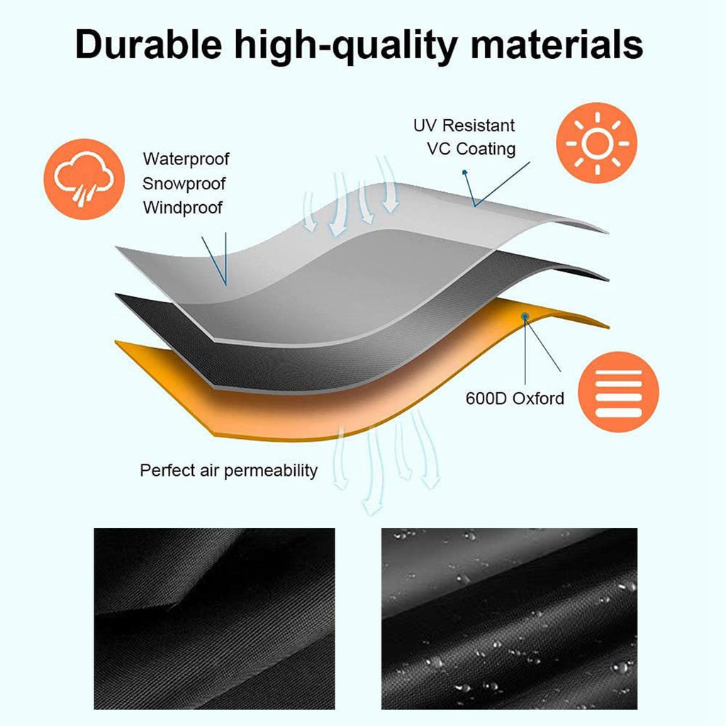 【Upgraded Sewing Technique】: The Outdoor Heater Dust Cover features an upgraded sewing technique using wear resistant thread. The seams and bottom drawstring edge are crafted using lock chain technology to prevent unraveling, ensuring the product's durability.
