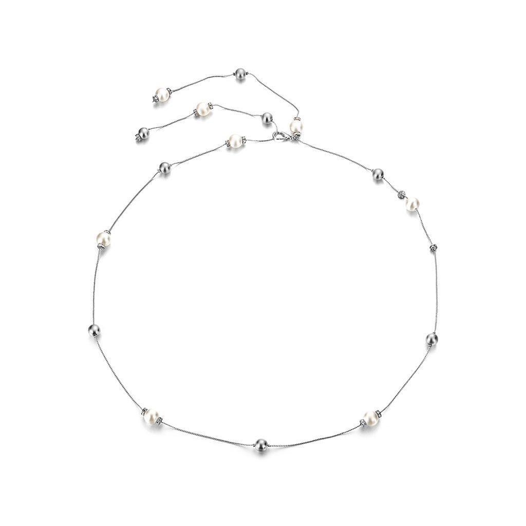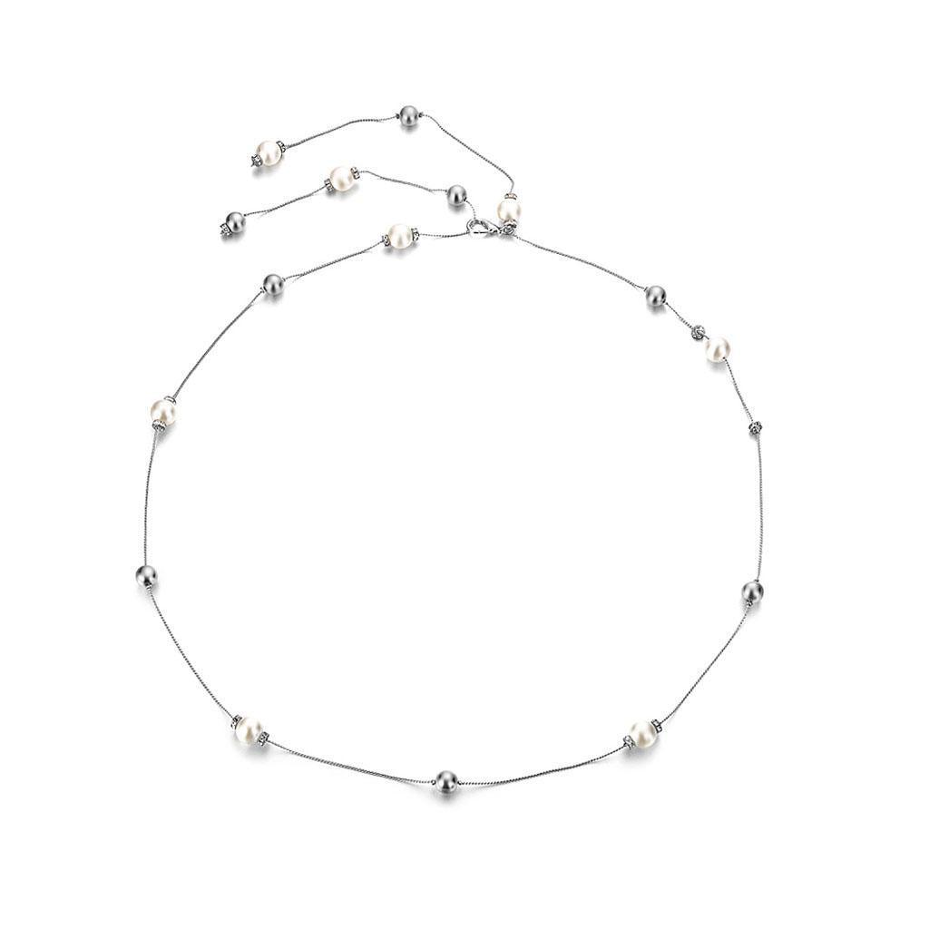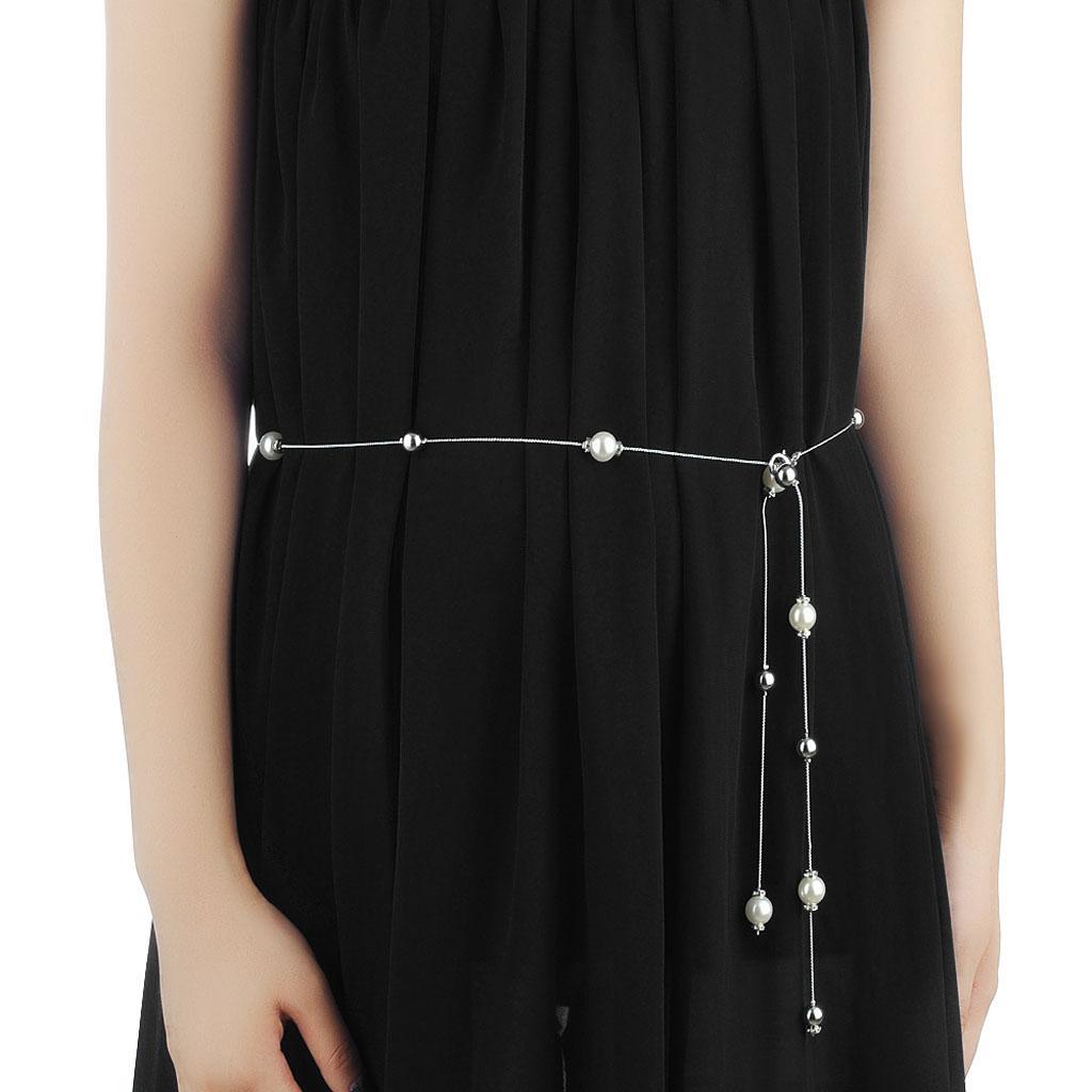 Maxbell Pearl Diamante Diamond Ladies Waist Chain Charm Belt Silver One Size Fit All