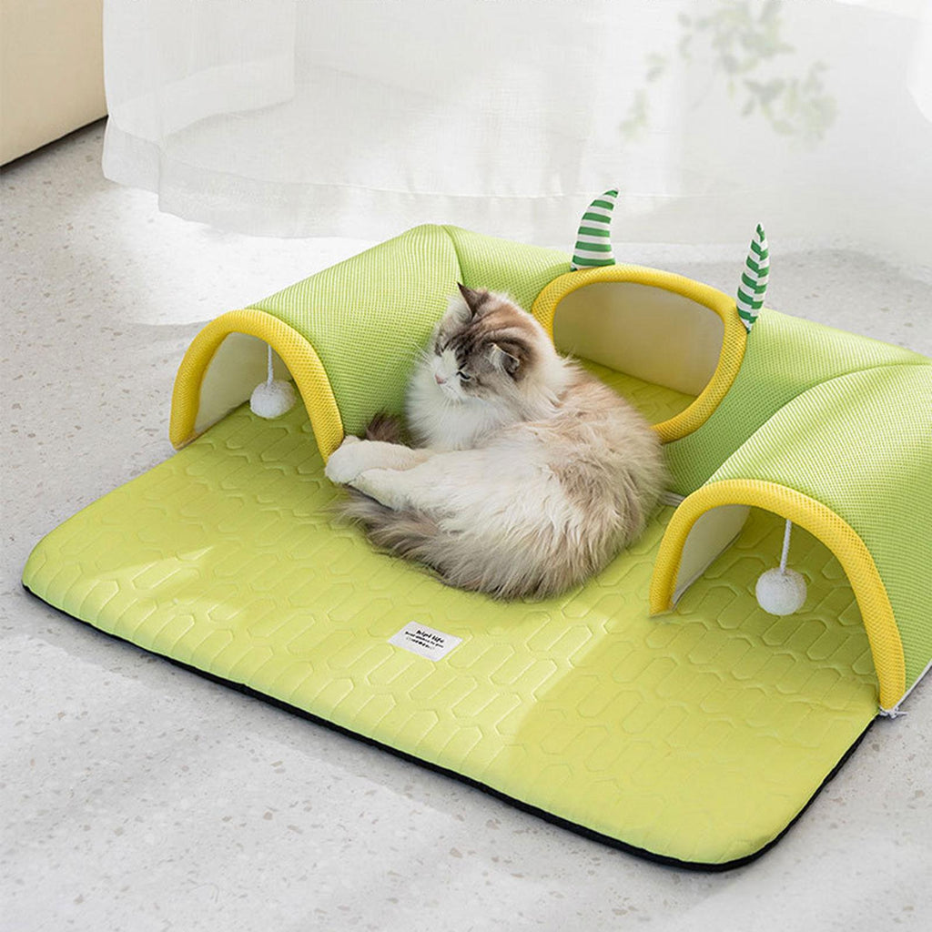 【Materials】: Crafted from silk , latex, and sponge, this cat tunnel bed offers a comfortable and breathable environment for your feline friend