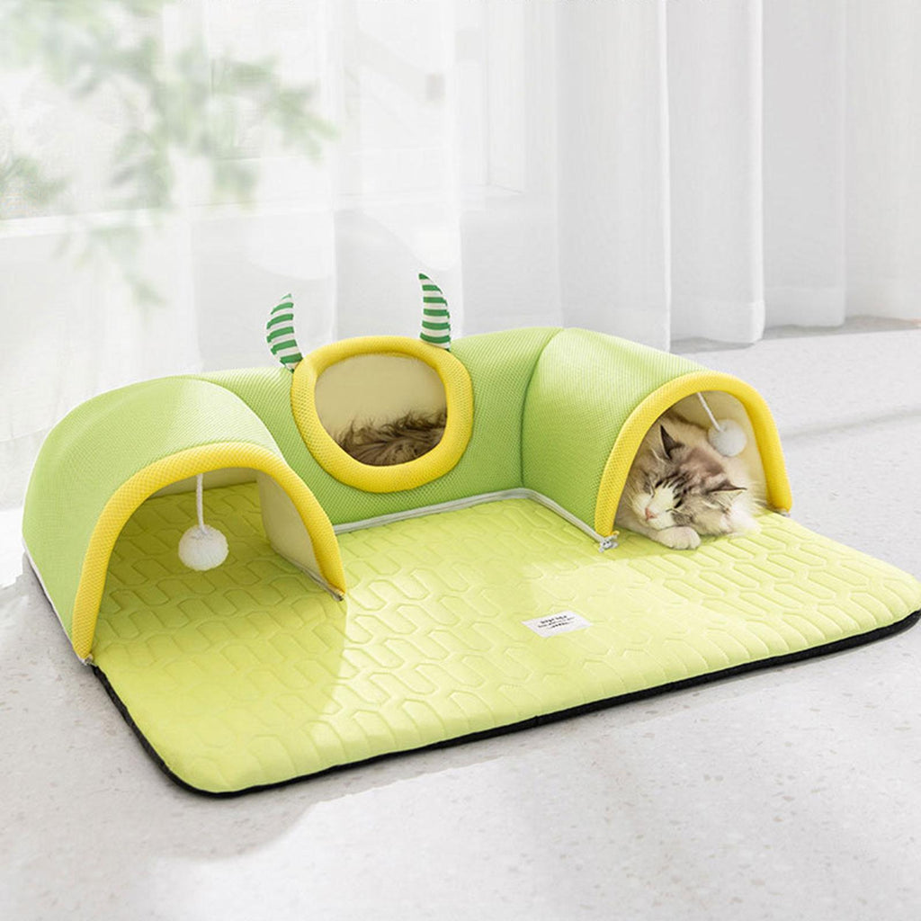 【Materials】: Crafted from silk , latex, and sponge, this cat tunnel bed offers a comfortable and breathable environment for your feline friend