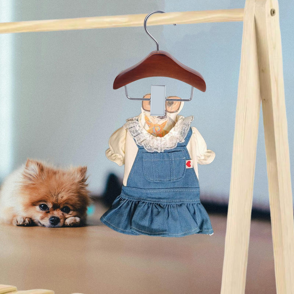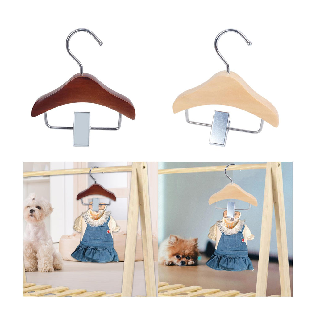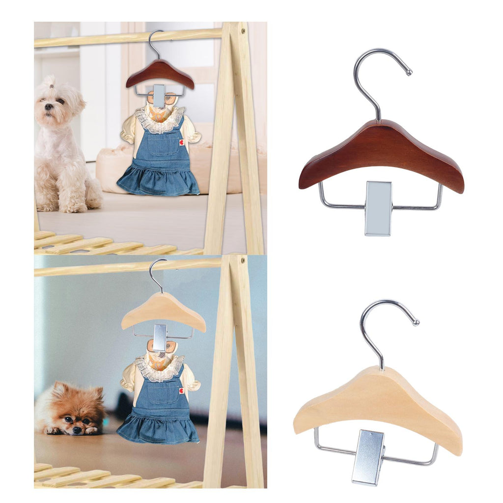 Maxbell Pet Clothes Hanger Wooden Small Clothes Hanging for Doll Newborn Cat Costume Dark Brown