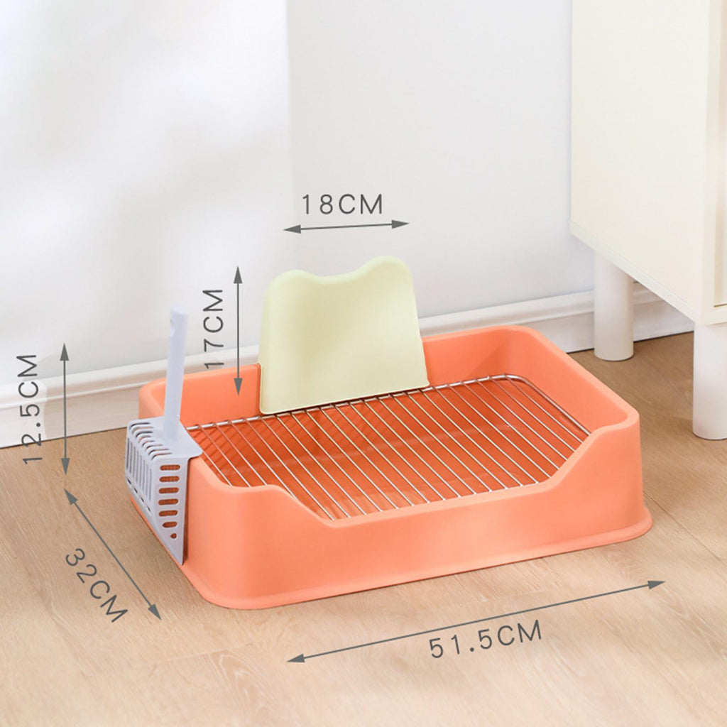 【Material】: The pet toilet is made of stainless steel material, durable and strong, not easy to break. 20.28''x12.60''x4.92'' in size.