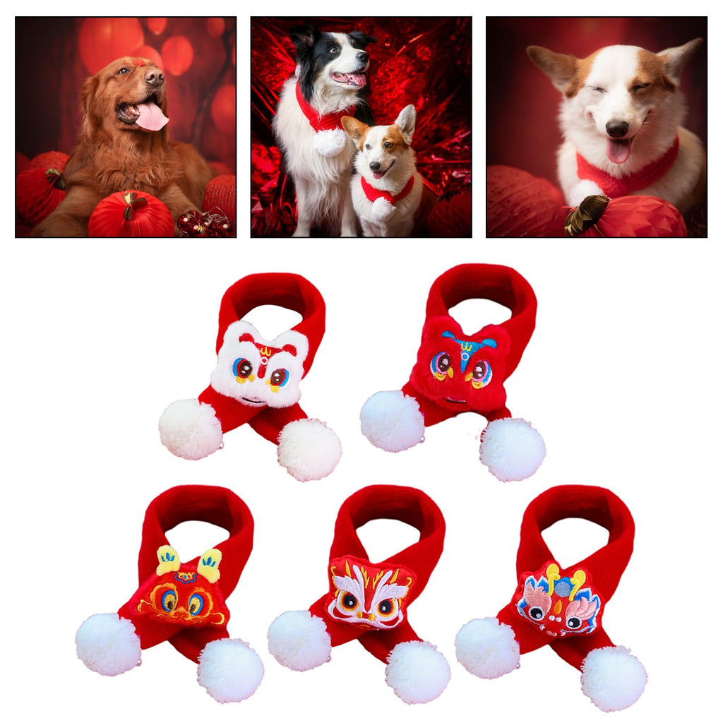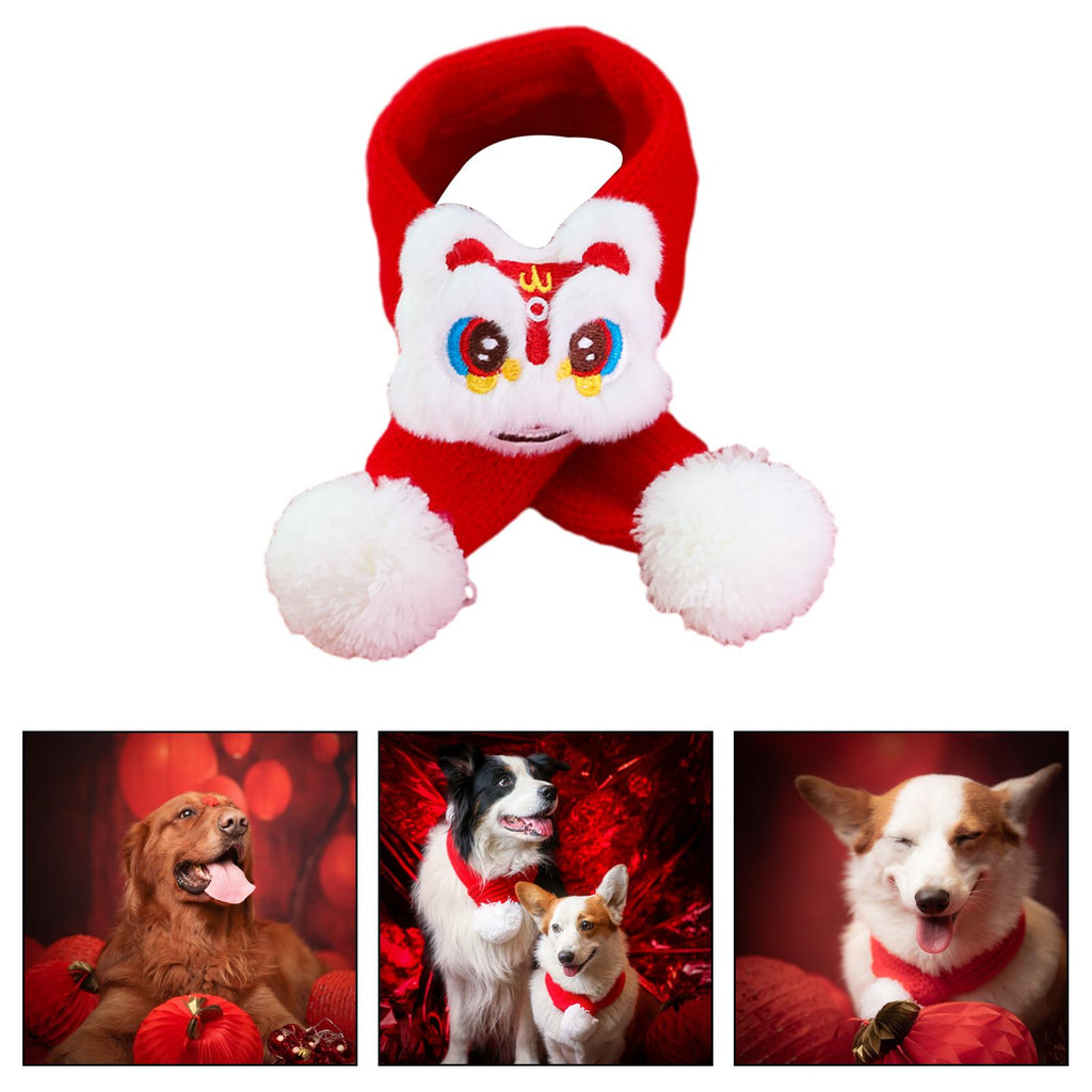 Maxbell Pet New Year Scarf Washable Dog Knitted Scarf for Kitten Puppy New Year Gift Nianshou