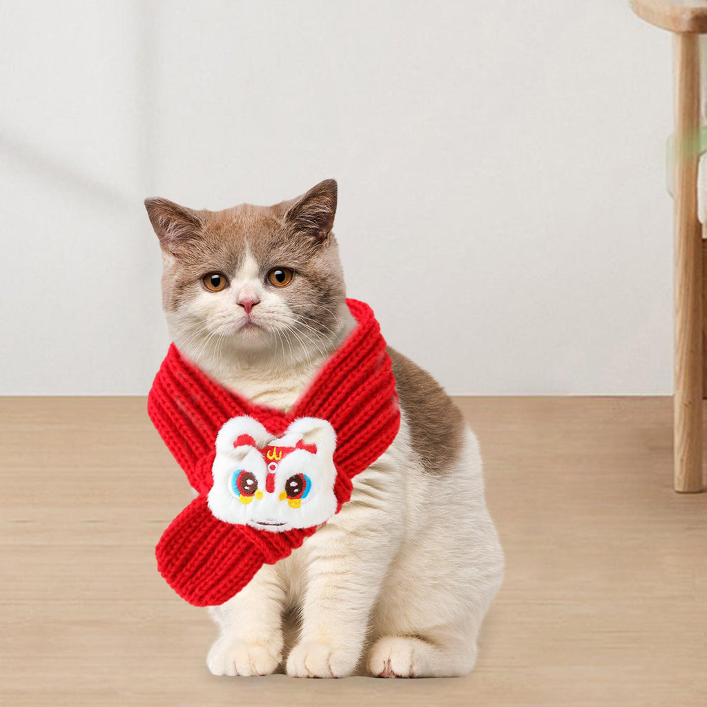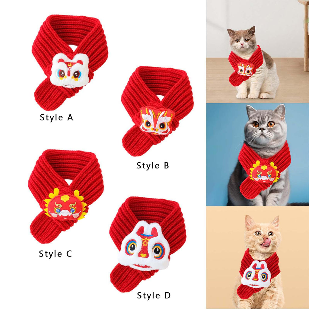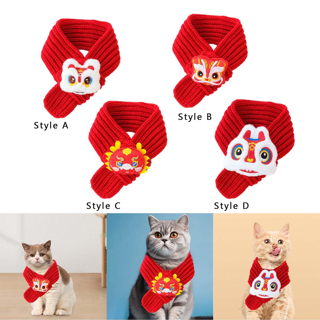 Maxbell Pet New Year Scarf Washable Dog Knitted Scarf for Kitten Puppy New Year Gift Style A