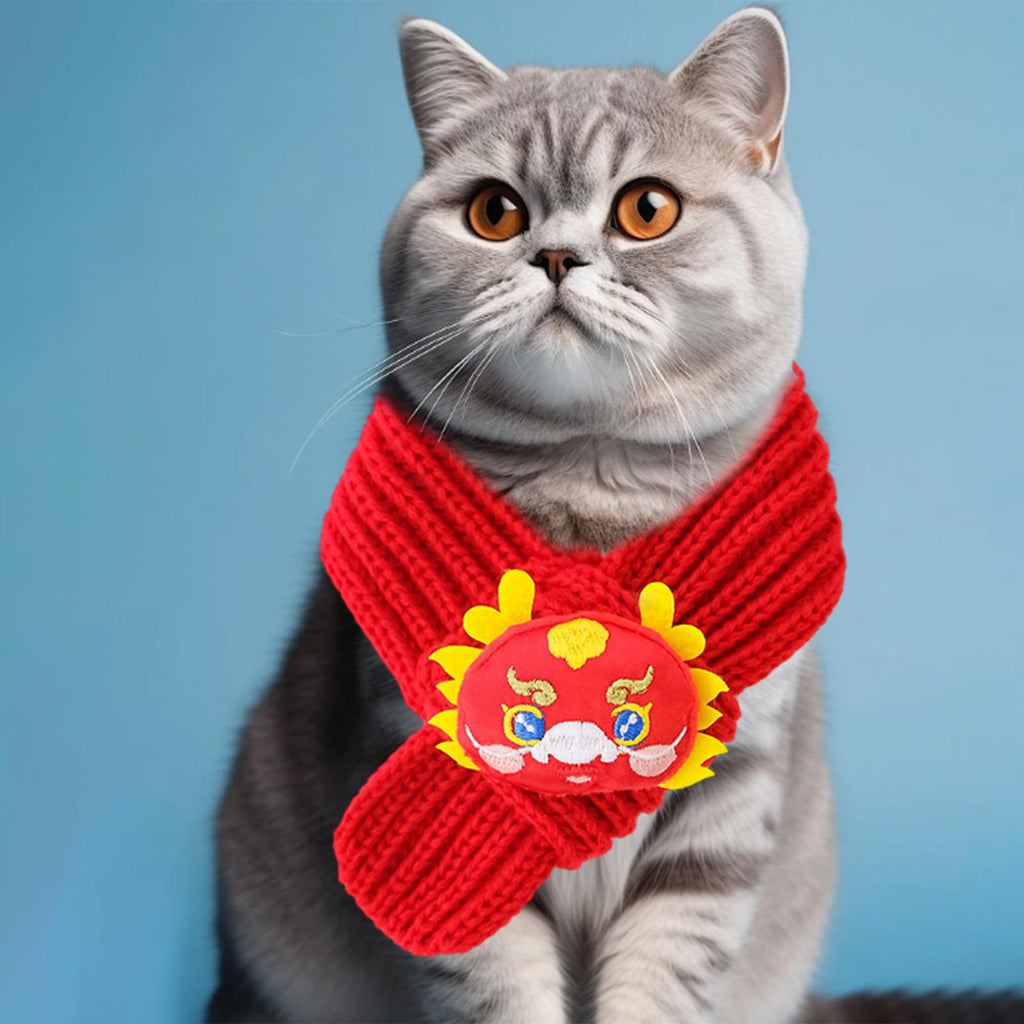 【Festive Design】: This pet scarf is perfect for the Lunar New Year, featuring chinese element design that symbolizes prosperity and good luck. It's an ideal accessory for your cat or dog during the Spring Festival.
