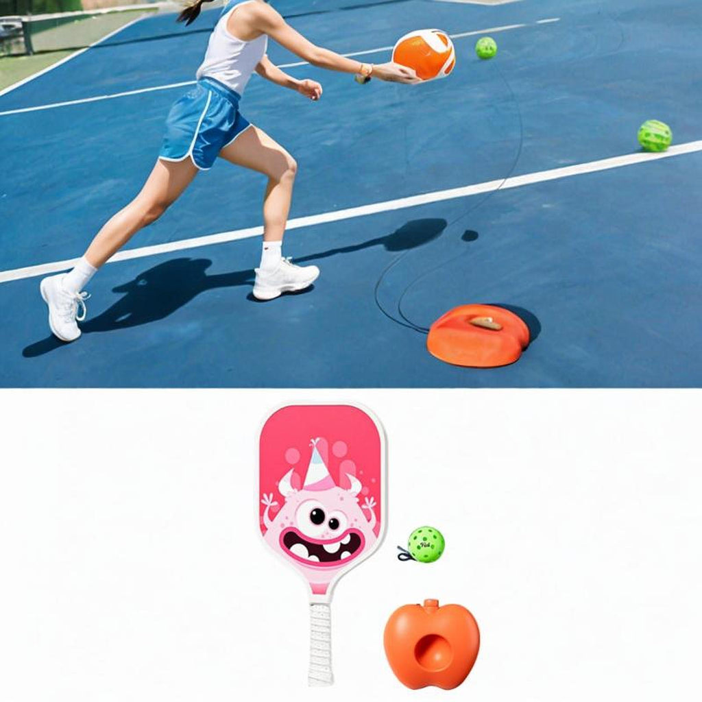 【Comprehensive Training Set】: The set includes everything needed to start playing right away, a children's paddle, a sturdy base, and a pickleball with a diameter of 74mm