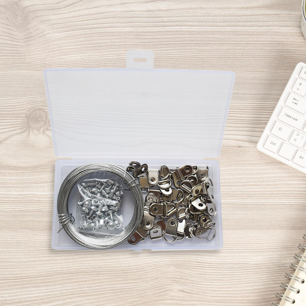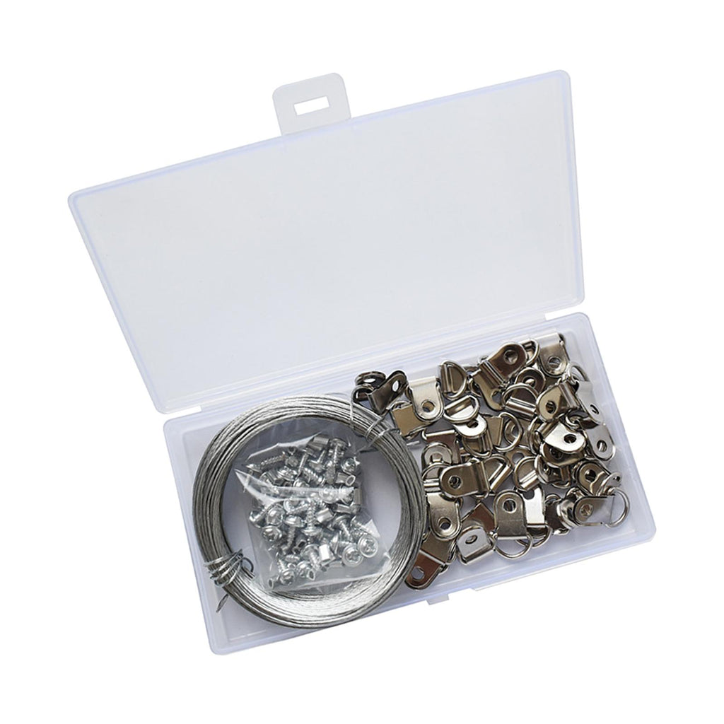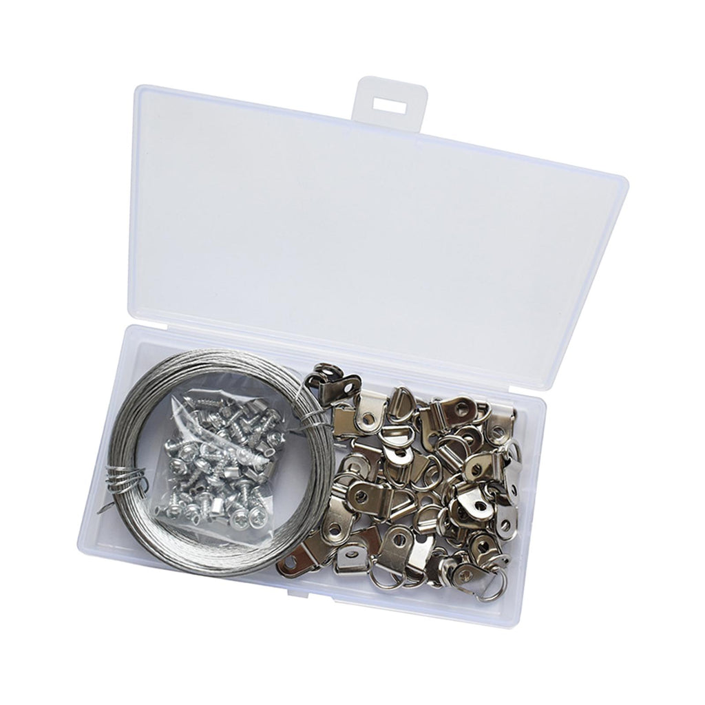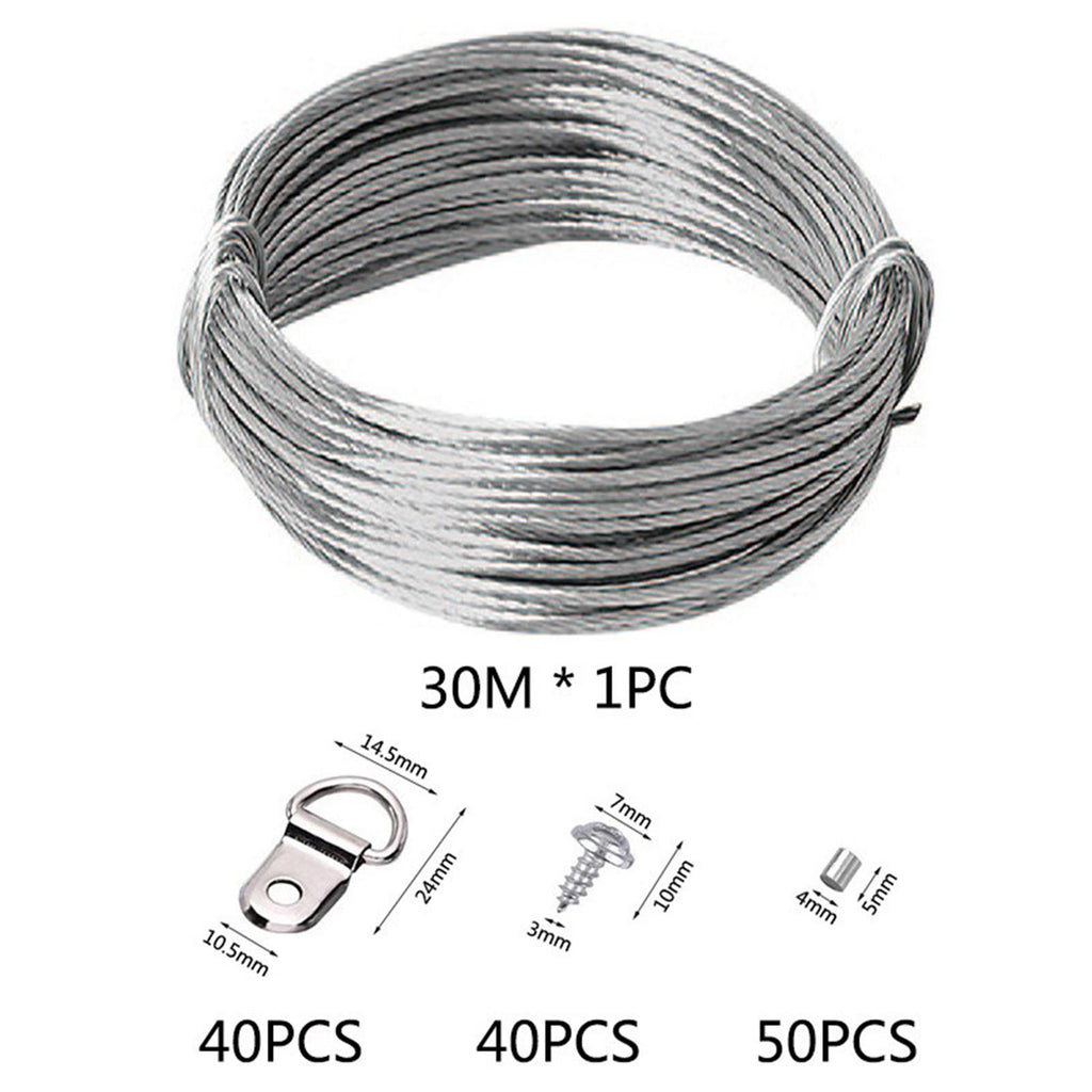 【Package Includes】: The package comes with 1pcs 30m Wire, 50pcs Crimping Loop Sleeves, 40pcs Picture Hanging D Rings and 40pcs Screws, providing you with everything you need for hanging pictures or other items.