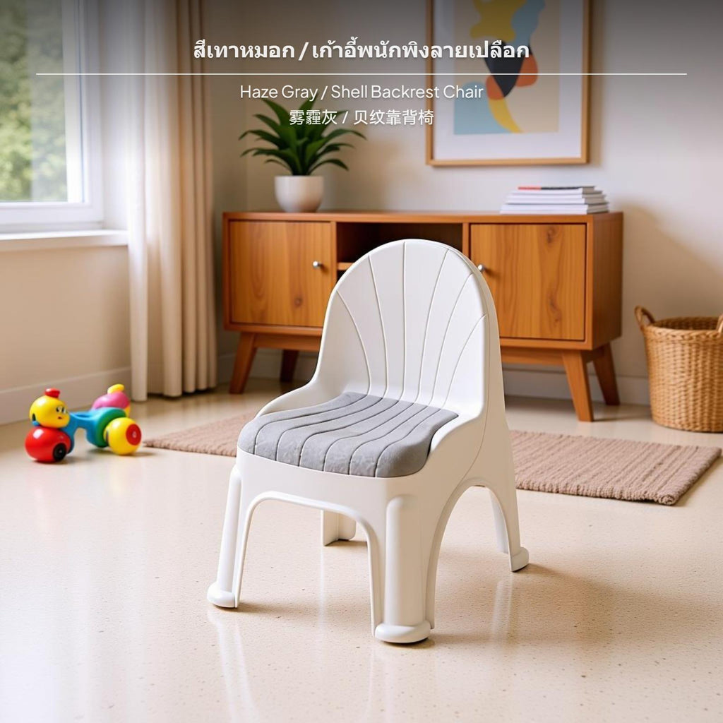 Maxbell Plastic Backrest Stool, Thickened Stackable Small Chair for Home, Kids & Adults, Slip-Resistant Lightweight Accent Seat, Modern Luxury design for Living Room, Entryway, Tea Table Haze Gray Shell