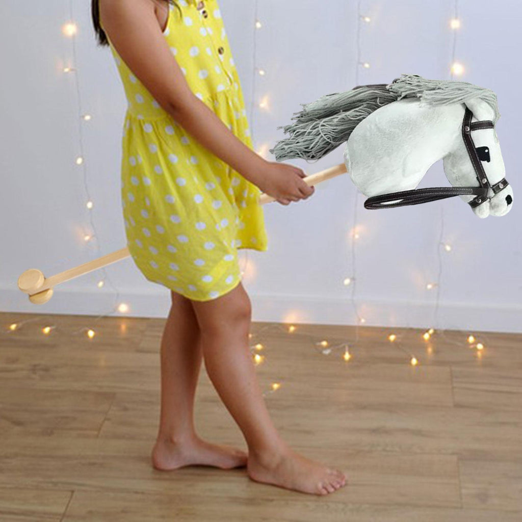 Plush Horse Riding Stick Fun 31.5'' Hobby Horse for Boys Girls Kids Children White