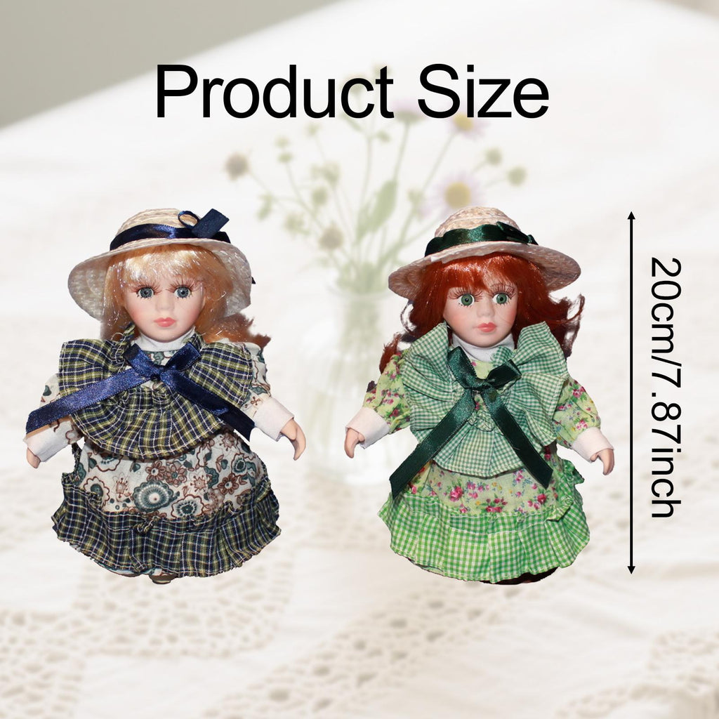 【Features】: Porcelain doll figures with hair, hat and dress, beautiful, fine outfits in an fashion designed