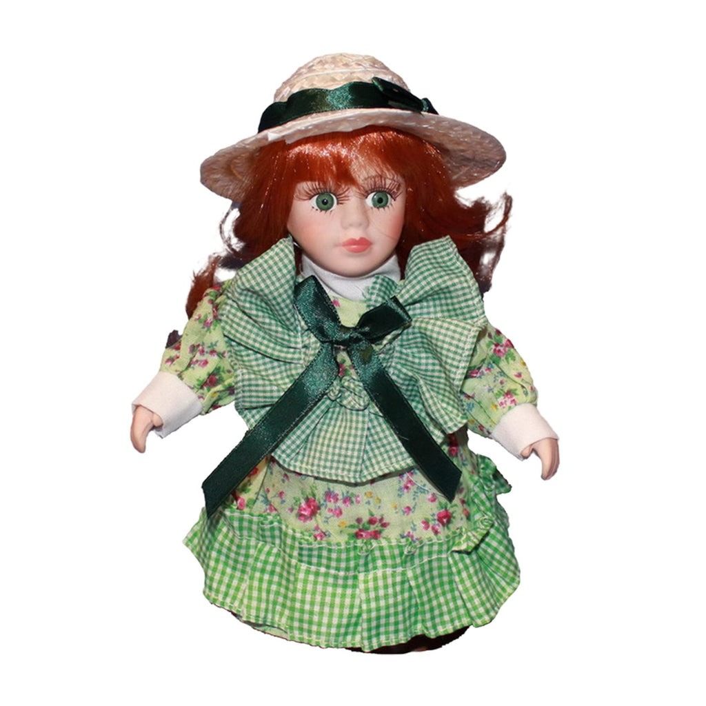Maxbell Porcelain Rural Girl Doll 7.87inch Birthday Gift Ceramic Doll for Girls Kids Green