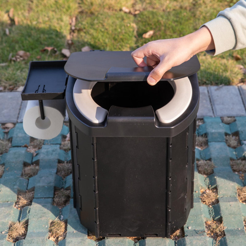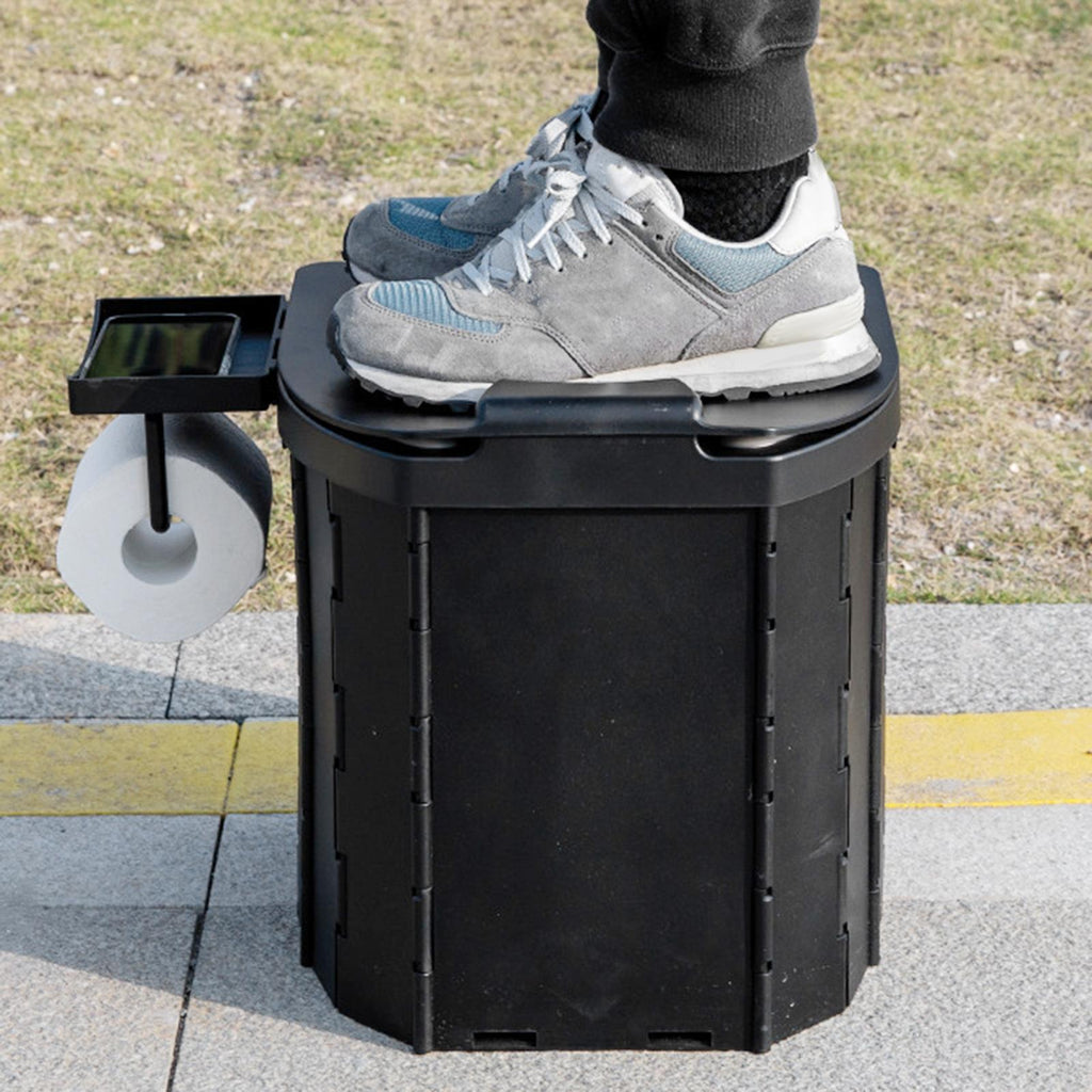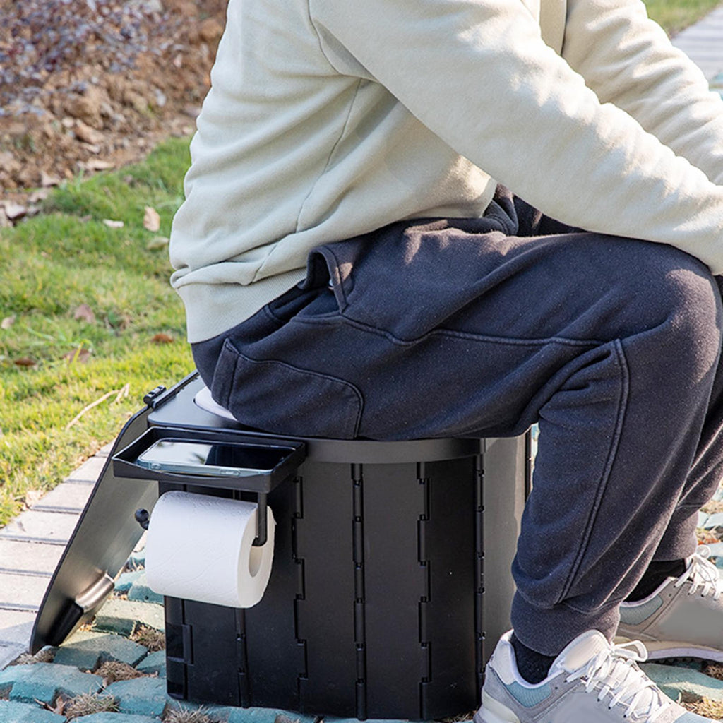 【Convenient Storage Shelf】: This Portable Commode Bucket is equipped with a shelf for holding tissues, phones, or keys, making it practical for travel or outdoor trips