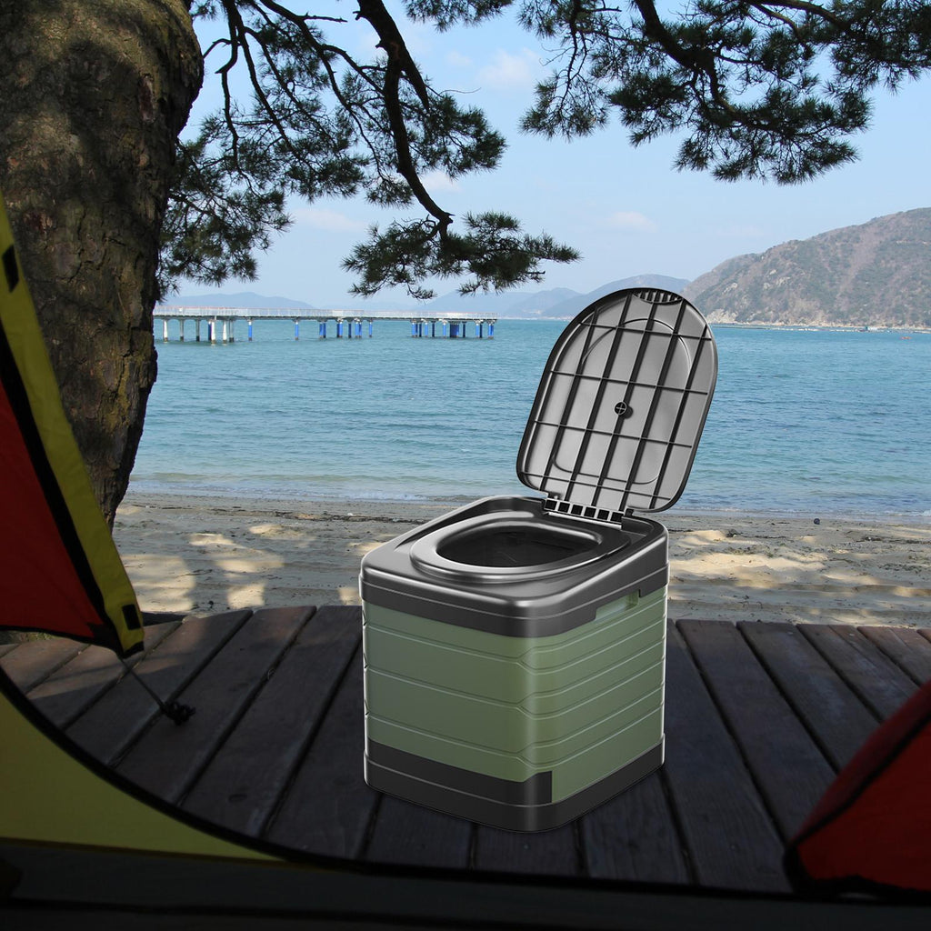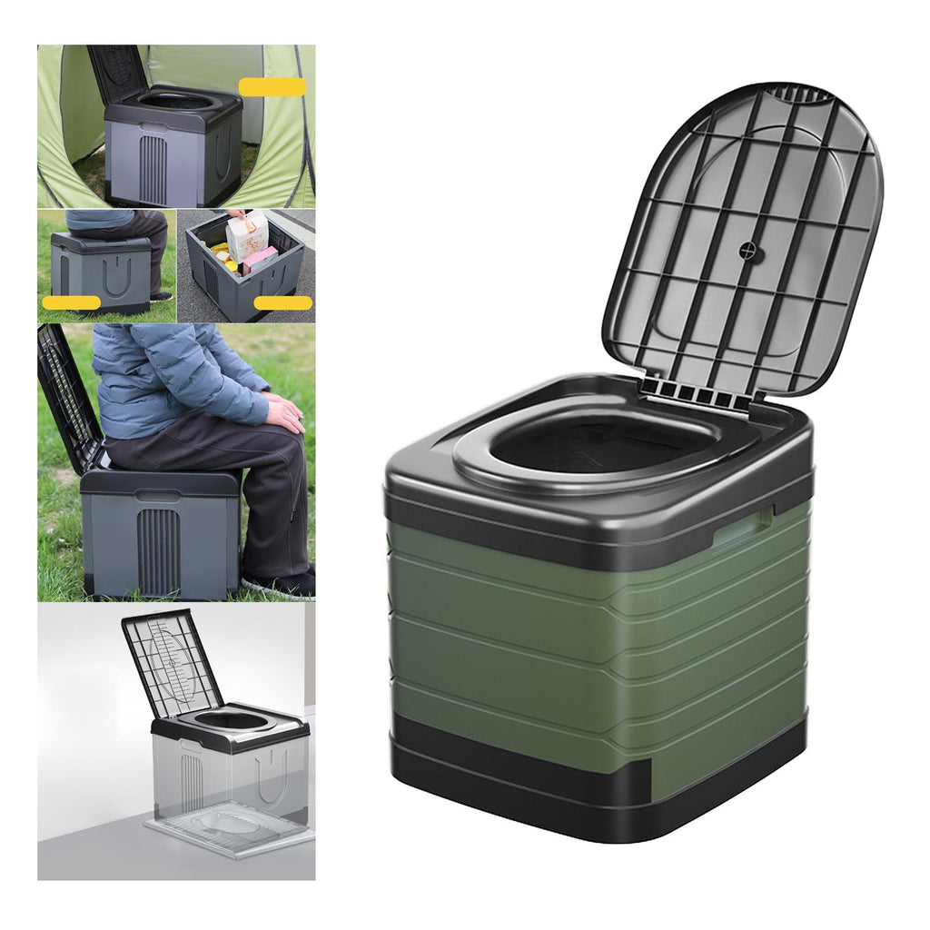 Maxbell Portable Toilet Trash Can Camping Folding Toilet for Long Trips Fishing Boat Round Green