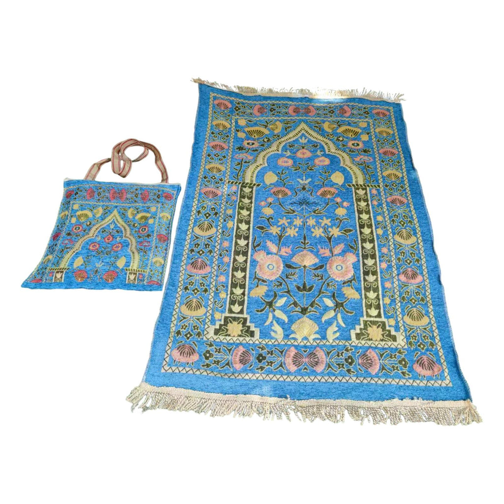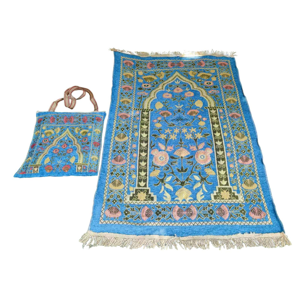 Maxbell Prayer Mat with Carrying Bag Area Rugs for Living Room Travel Bedroom Blue