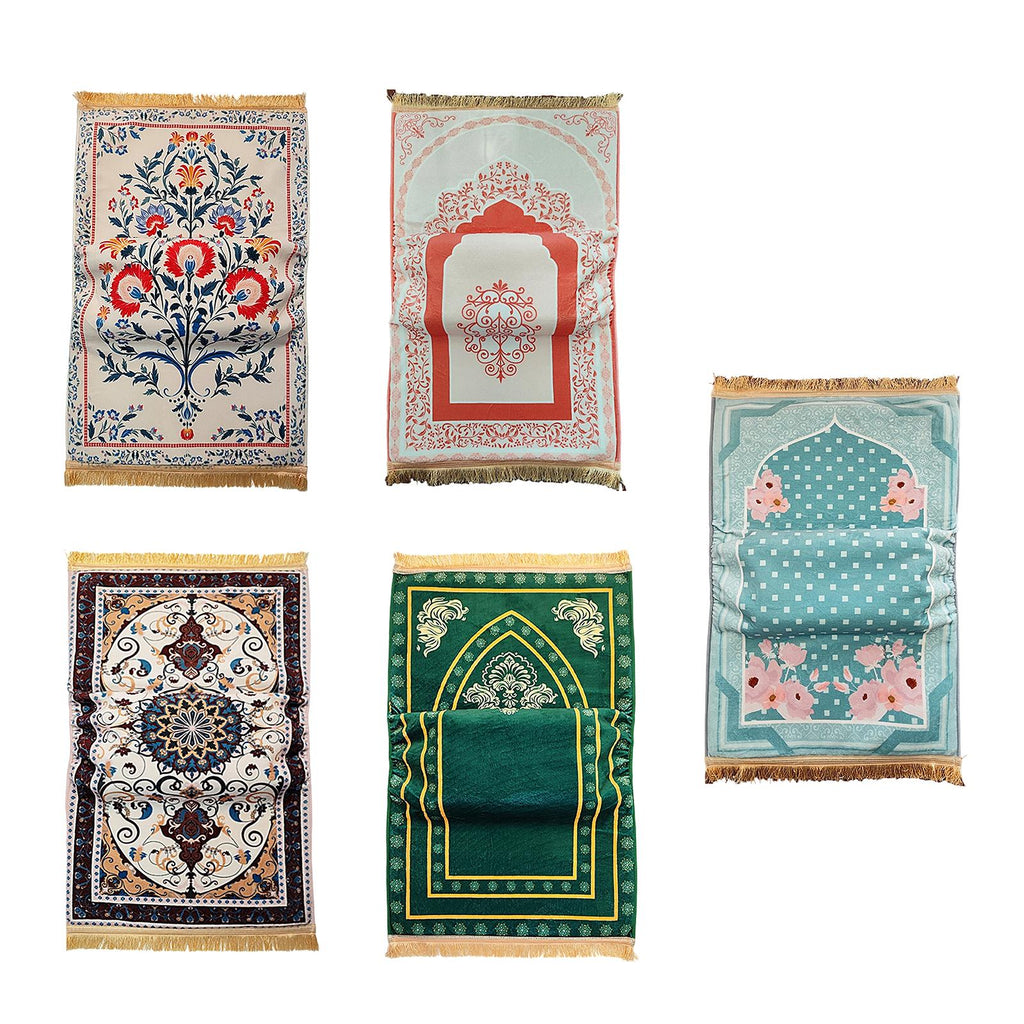 Prayer Rug Compact Turkish Soft Muslim Praying Rug for Men Women Kids Adults Style A