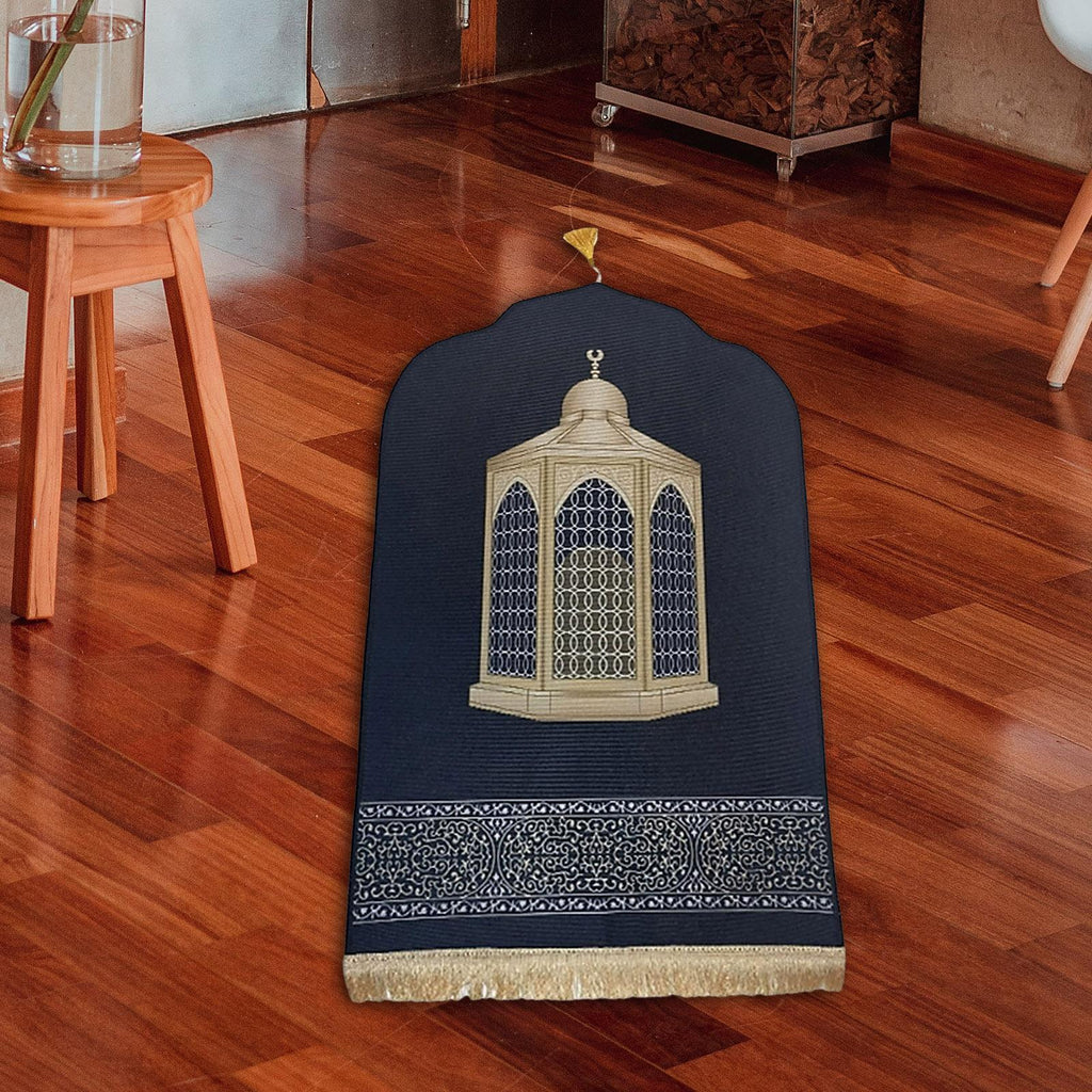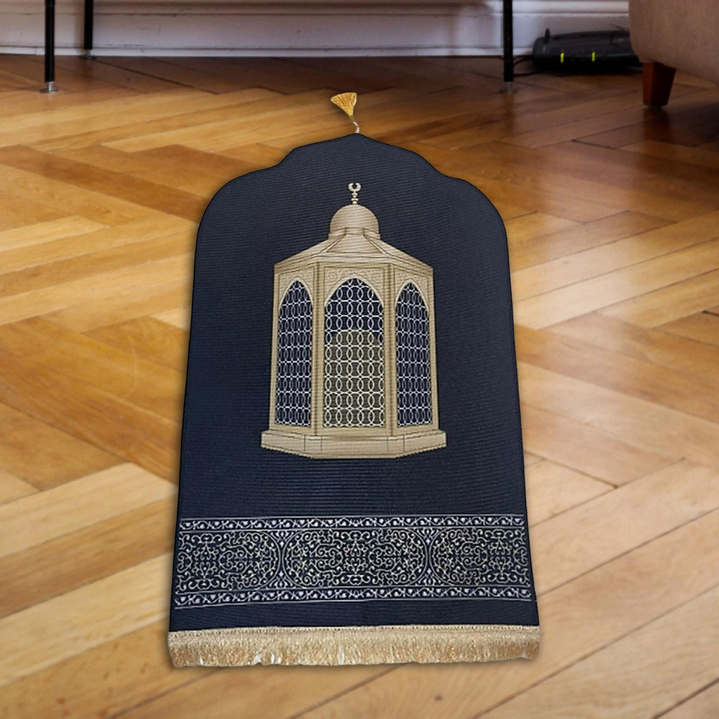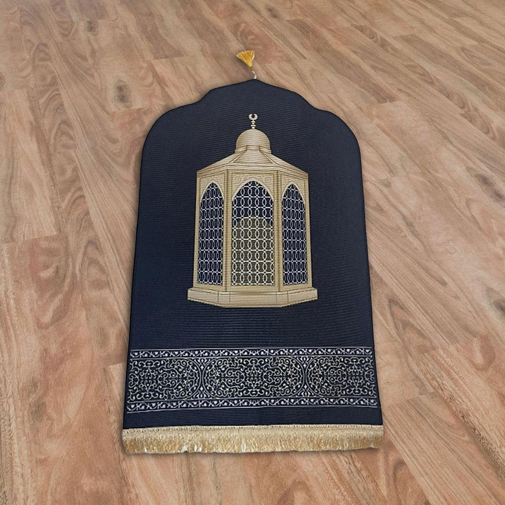 【Elegant Design】: Featuring intricate patterns and tassel edging, this prayer mat is meticulously crafted to provide a luxurious texture that enhances comfort