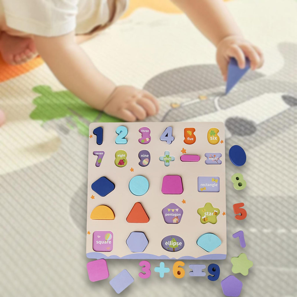 【WOODEN PUZZLE BOARD SET CONTAIN】: This Children's Number and Shape Recognition Matching Board is designed to help children understand numbers and shapes, enhancing their cognitive skills.