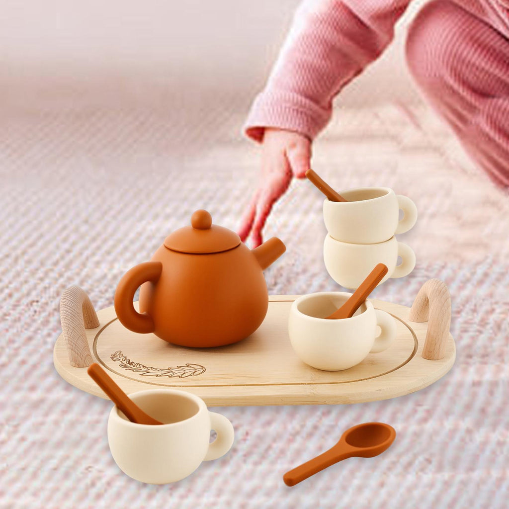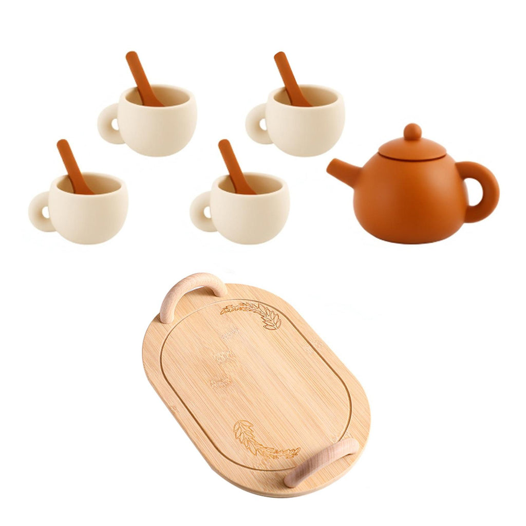【Kids Pretend Toy】: Silicone tea cup set tableware is for kitchen pretend play game toy