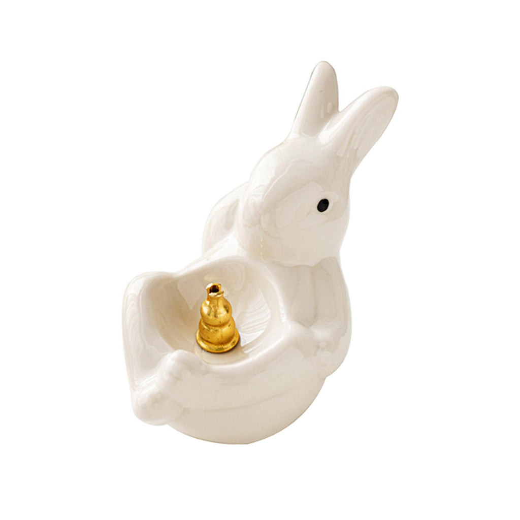 Maxbell Rabbit Incense Holder Incense Burner Gift Statue for Living Room SPA Desktop White