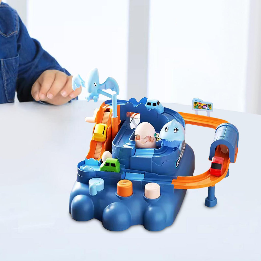 【Great Gifts】: The dinosaur themed track car toy set is a great gift for kids who love cars and dinosaurs, offering them endless hours of fun and learning