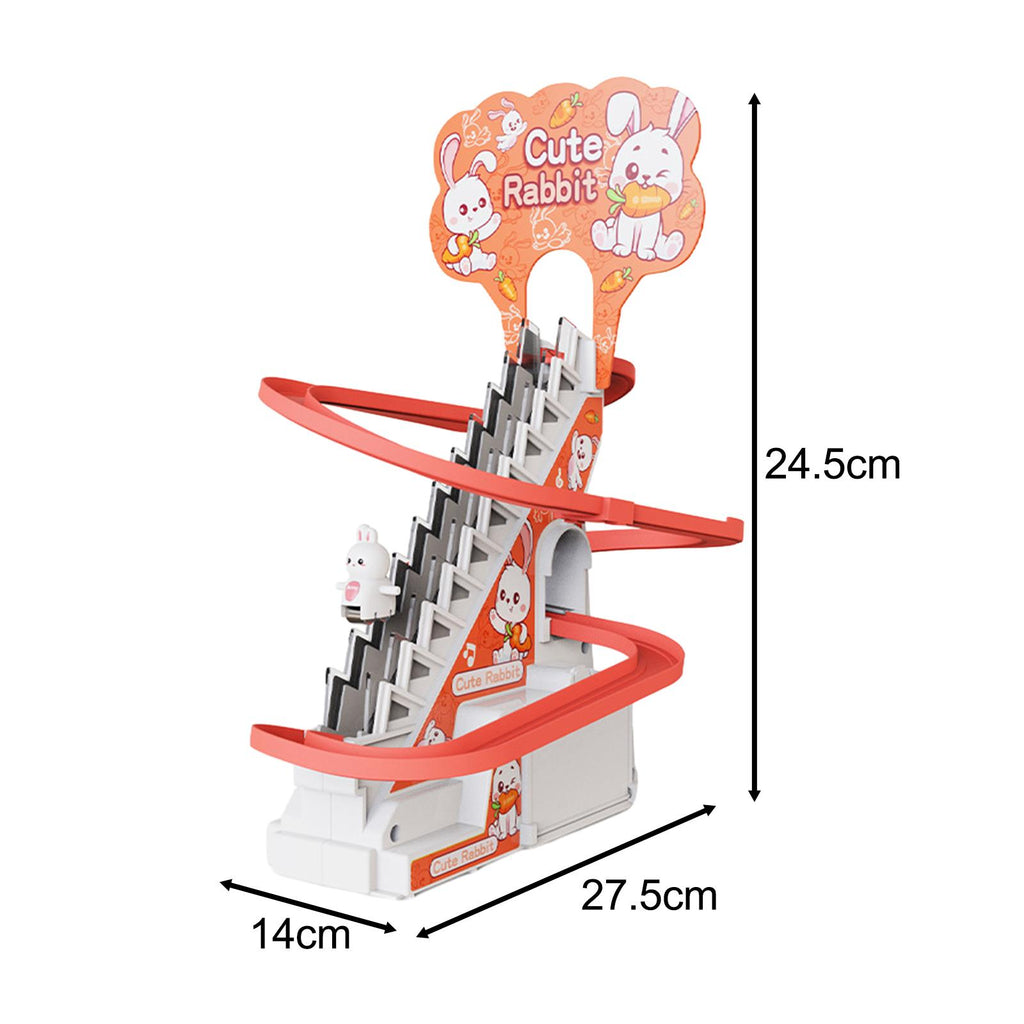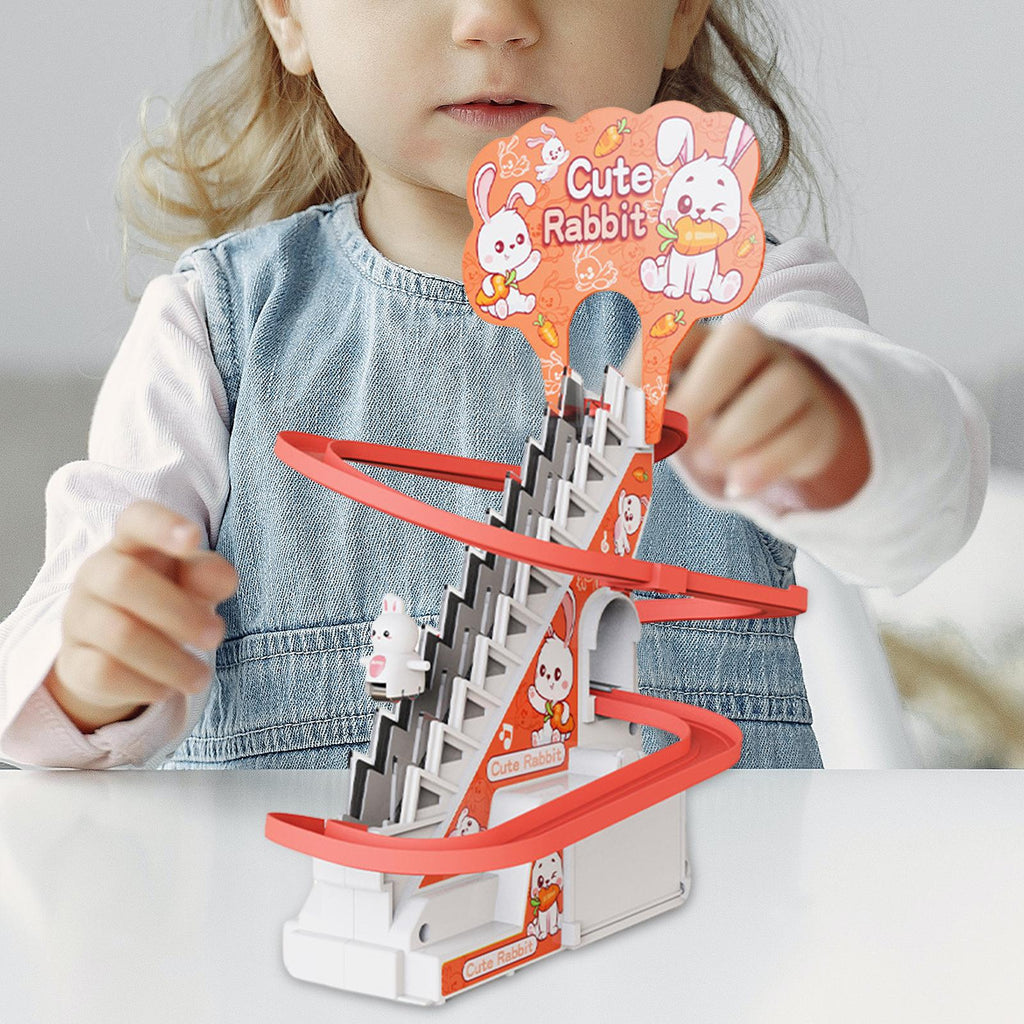 【Slide Toys Set】: Creative funny rubbits climb the stairs and slide down.