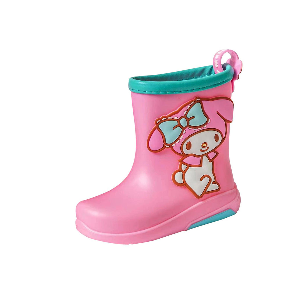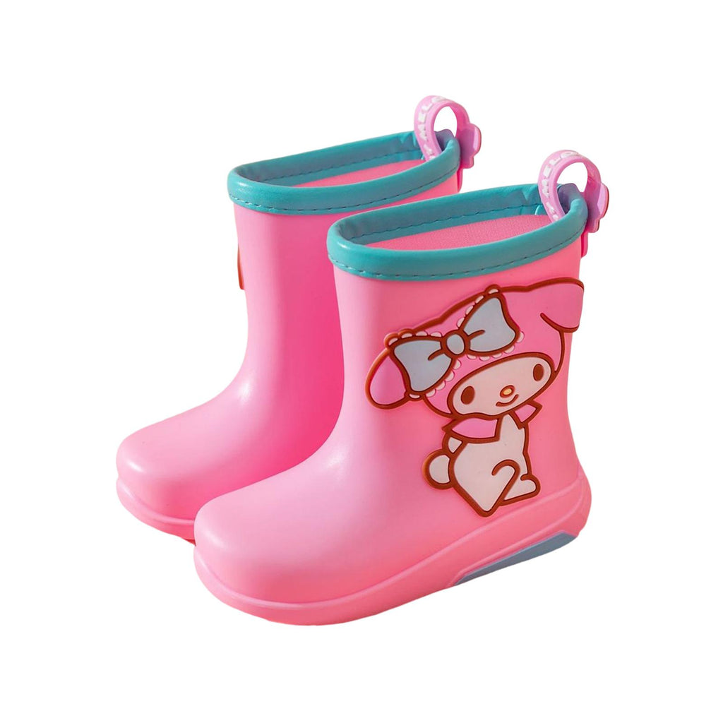 Maxbell Rain Boots Cartoon Pattern Easy on Handle Non Slip Waterproof Shoes for Kids Pink Blue 18cm
