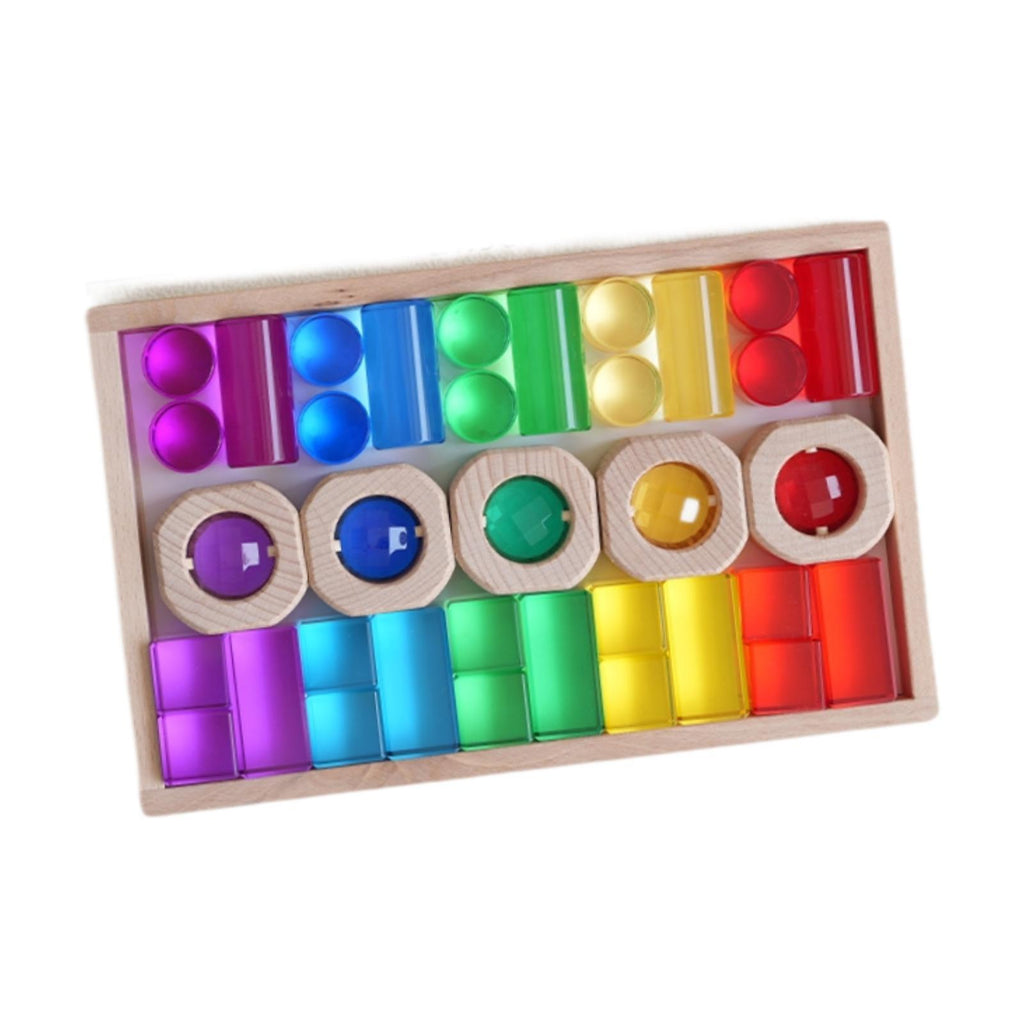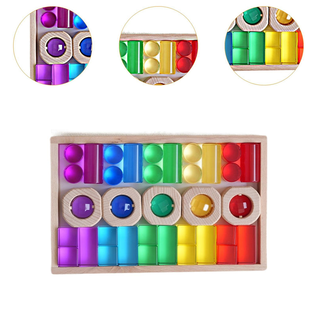 【Material】: The rainbow building blocks set is made of quality acrylic material, and the box is careful made of solid wood, which is secure and sturdy, smooth