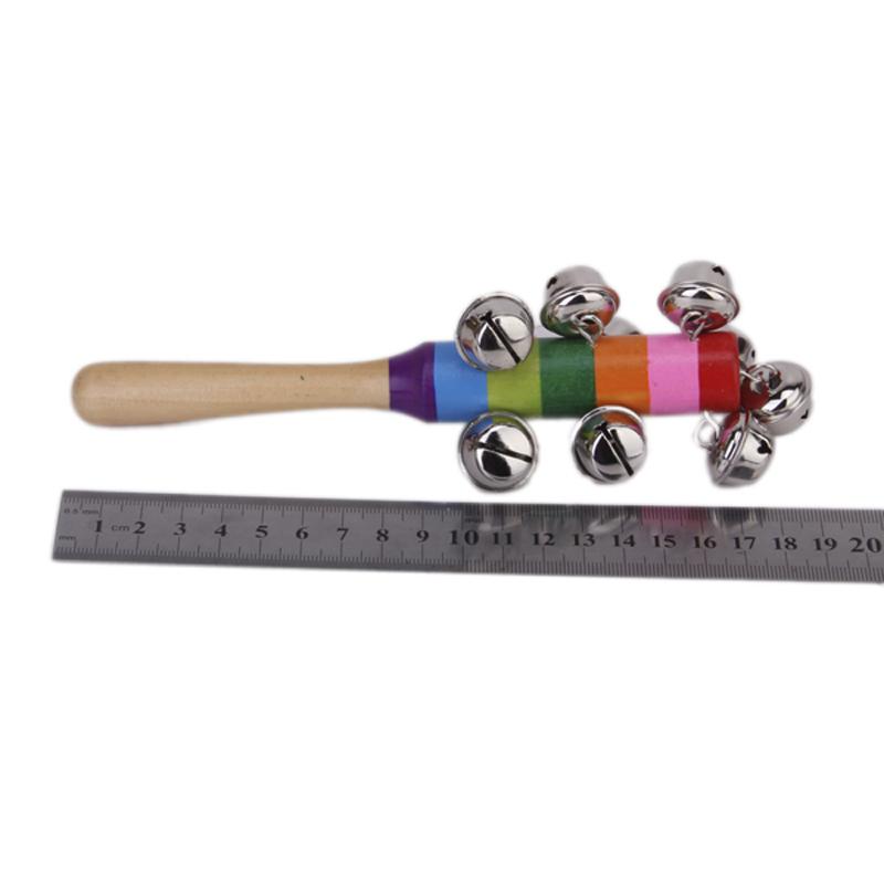 Maxbell Rainbow Color Wooden Jingle Hand Bells Toy for Kids