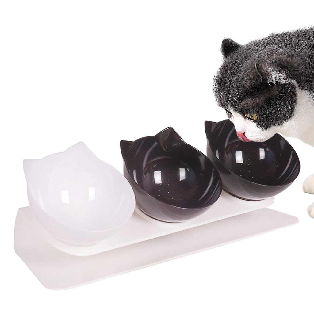【3 Bowls Design】: The elevated cats feeder Bowls l is detachable, easy to clean, making your cleaning work easier.