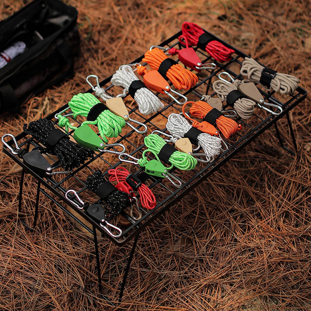 【Application】: Tent wind rope widely used in outdoor, hiking, camping, fishing, travel, home, automotive fields, fixed tents, tarpaulins, awnings, canopies, hammock rain curtains, sleeping bags, backpacks, etc.