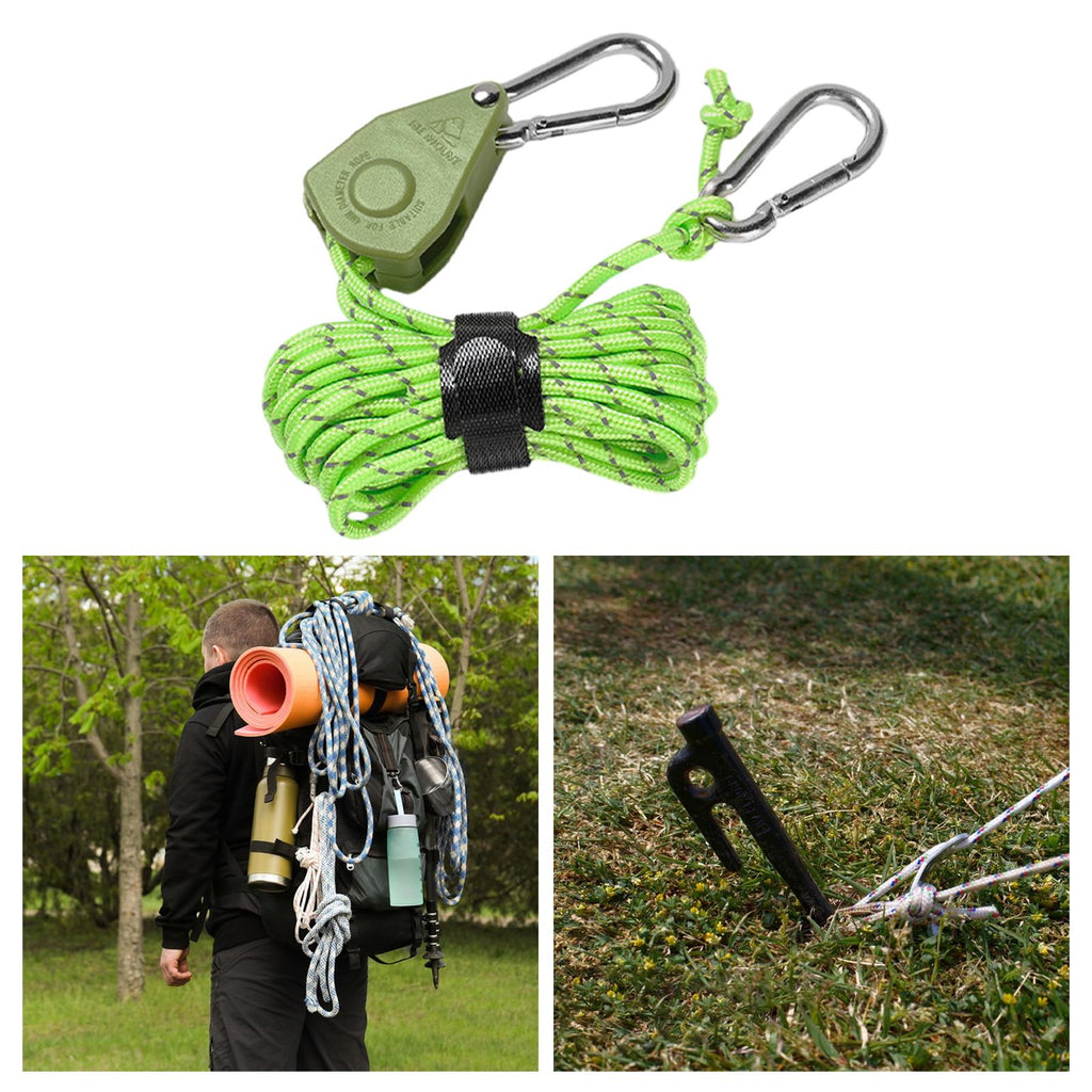 【Application】: Tent wind rope widely used in outdoor, hiking, camping, fishing, travel, home, automotive fields, fixed tents, tarpaulins, awnings, canopies, hammock rain curtains, sleeping bags, backpacks, etc.
