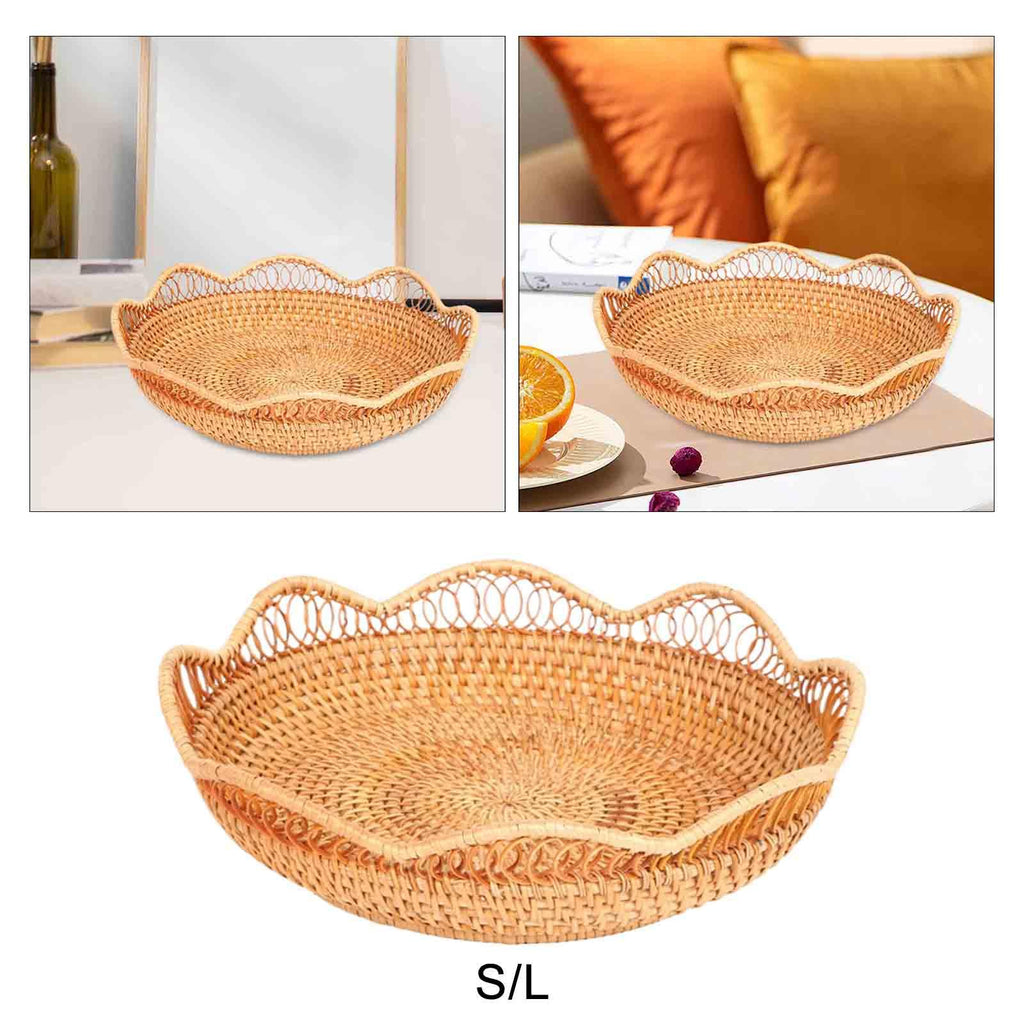 Maxbell Rattan Fruit Basket Practical Candy Snack Tray for Restaurant Hotel Tabletop S