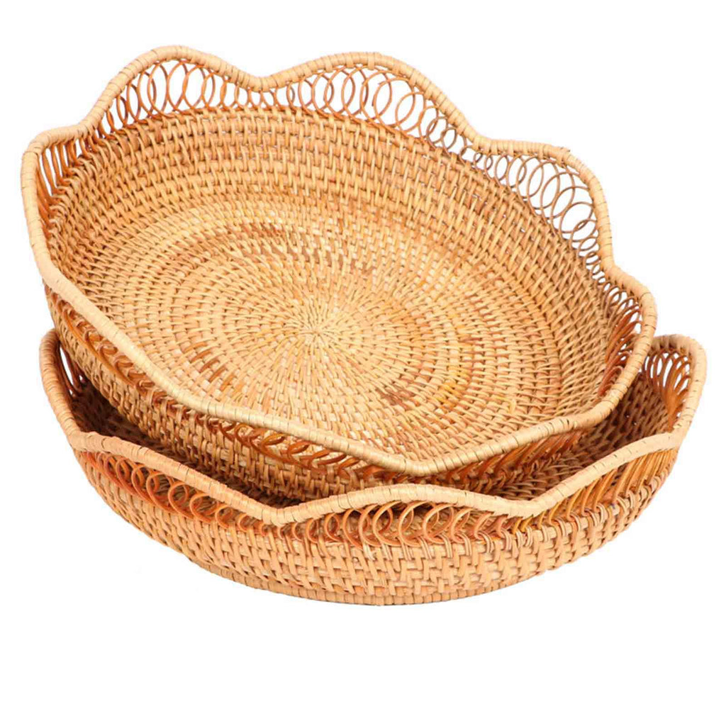 【Product】: This is a woven rattan fruit basket, suitable for storing candies, snacks, and pastries. It can also be used as a tray.