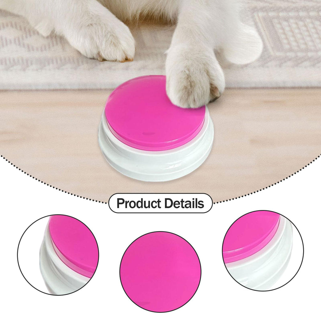 【Compact Design】: Made from sturdy ABS, this Dog Communication Button measures 8.8cm/3.46inch in diameter and 4.2cm/1.65inch in height, making it a sturdy yet compact addition to your pet's collection of toys