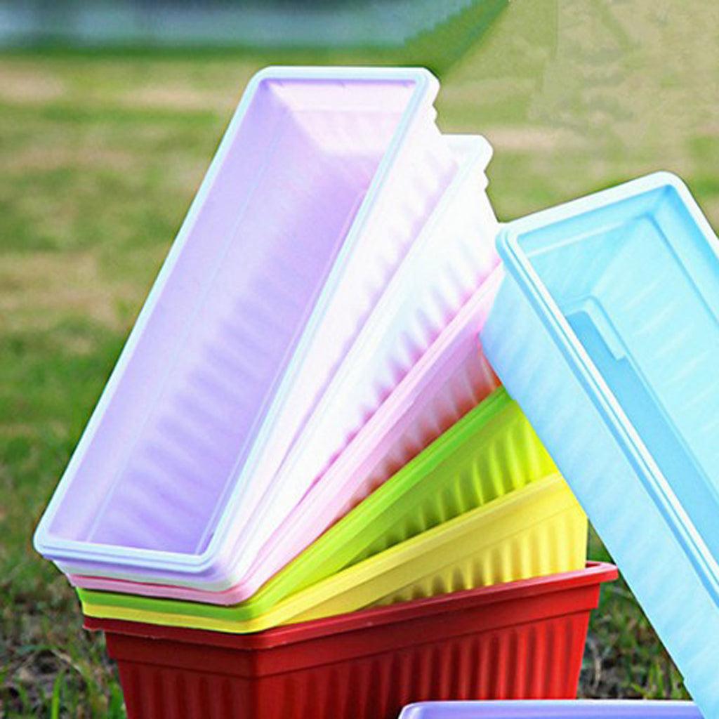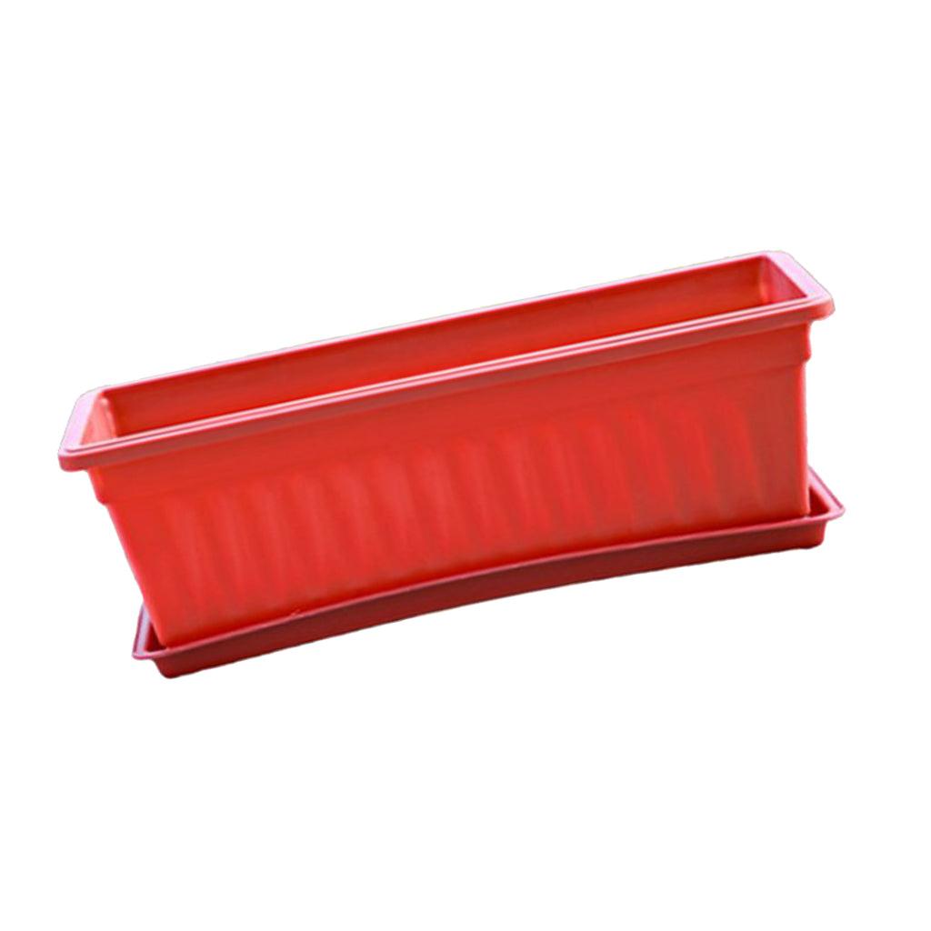 Maxbell Rectangular Flower Pot Color Plastic Plant Planter Saucer Garden Red