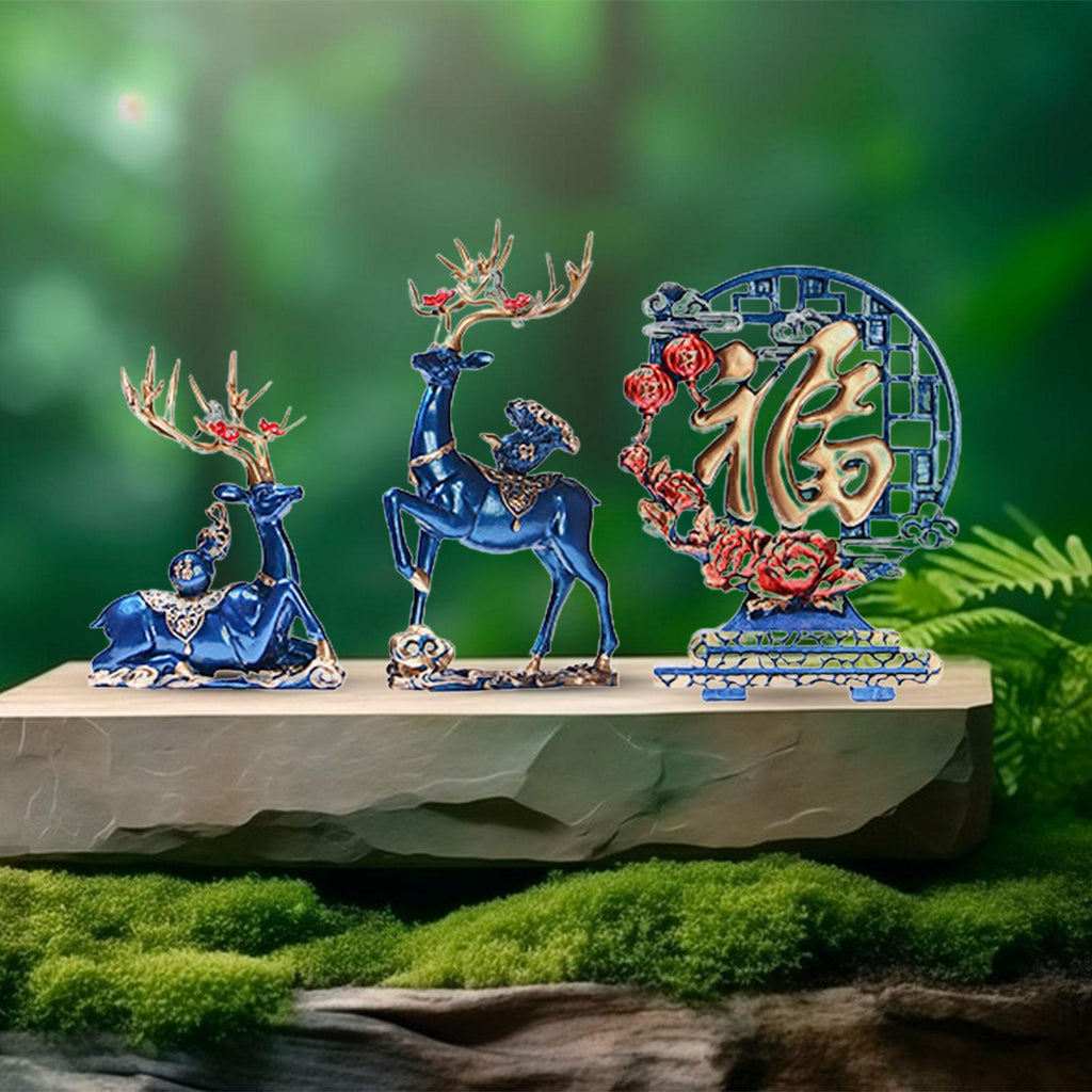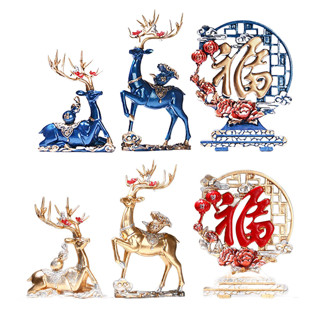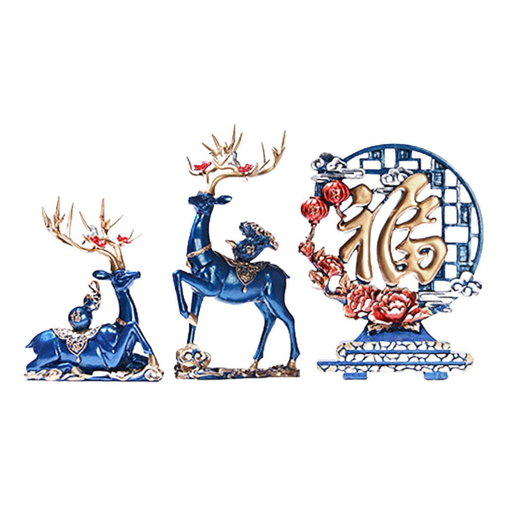 Maxbell Reindeer Figurines Tabletop Crafts Deer Statues for Bookshelf Bedroom Office Blue