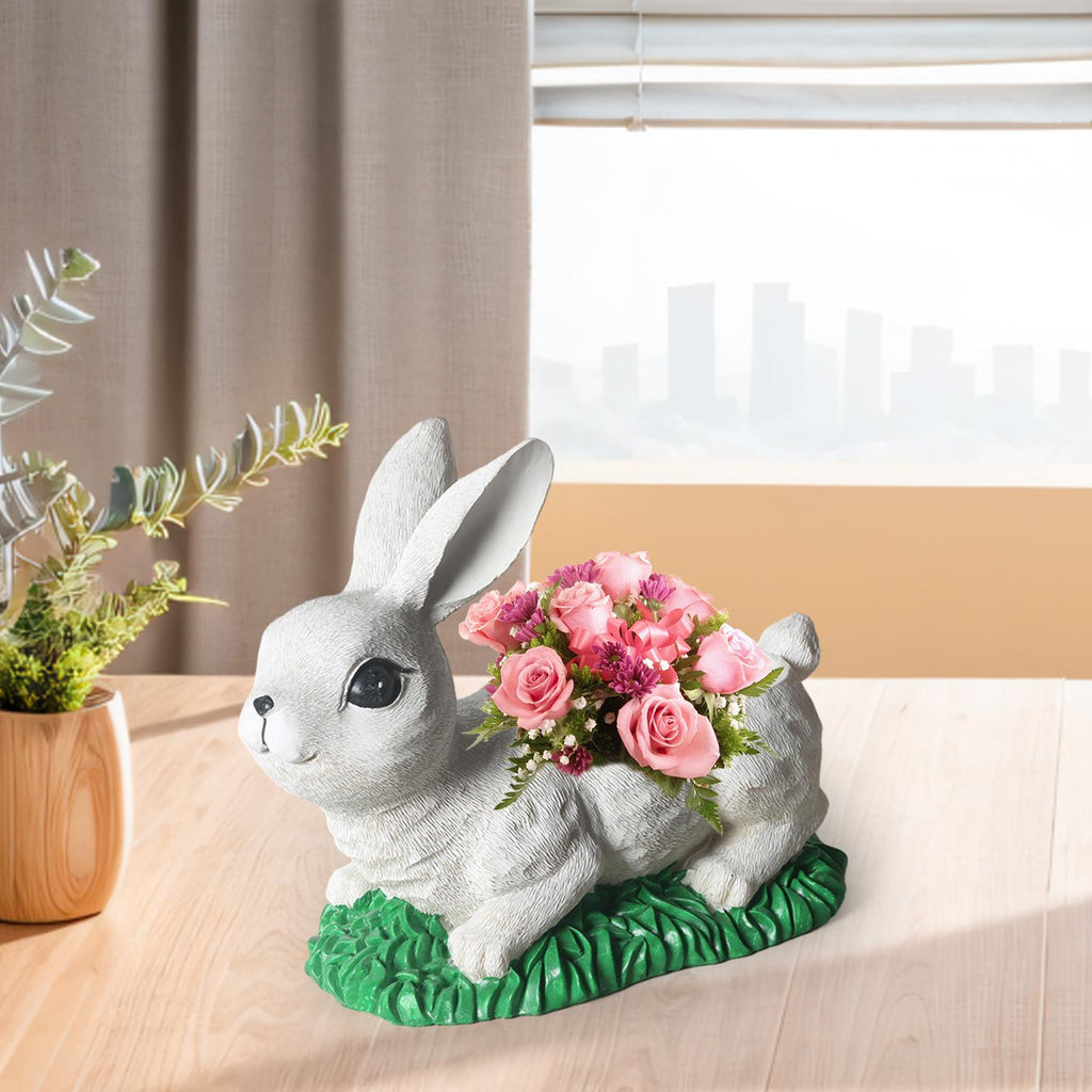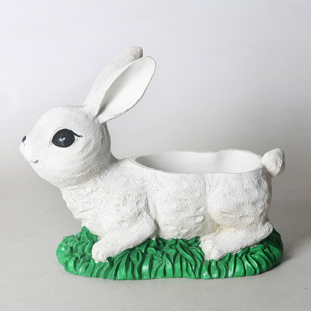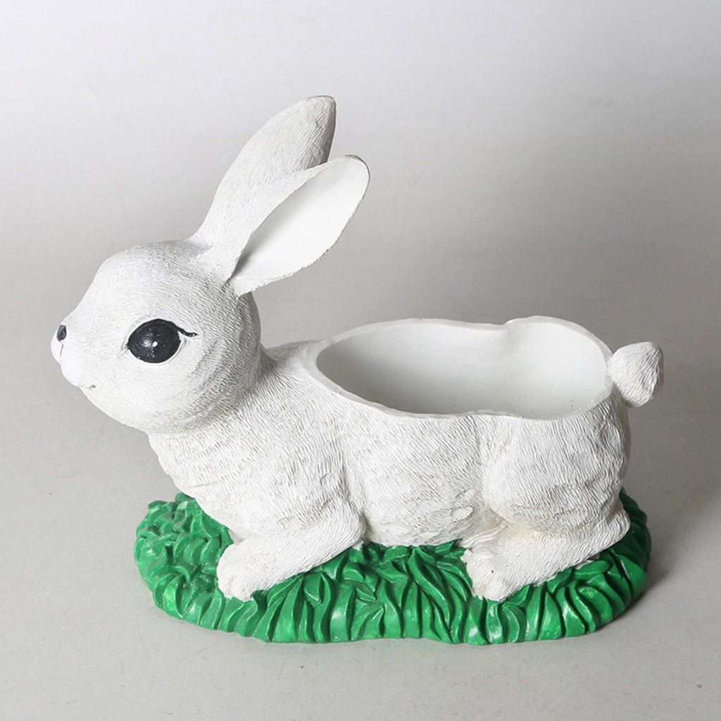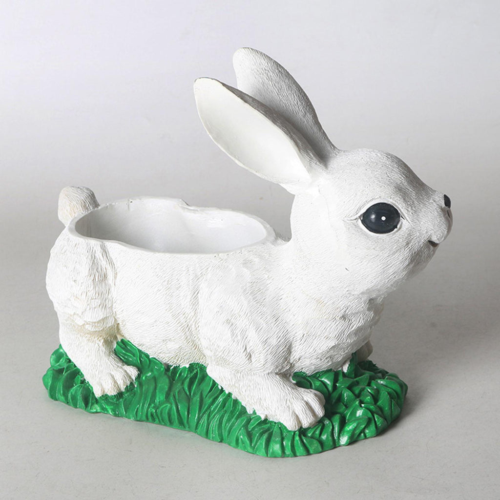 Maxbell Resin Bunny Figurine Decorative Rabbit Planter Pots for Cabinet Easter Party white