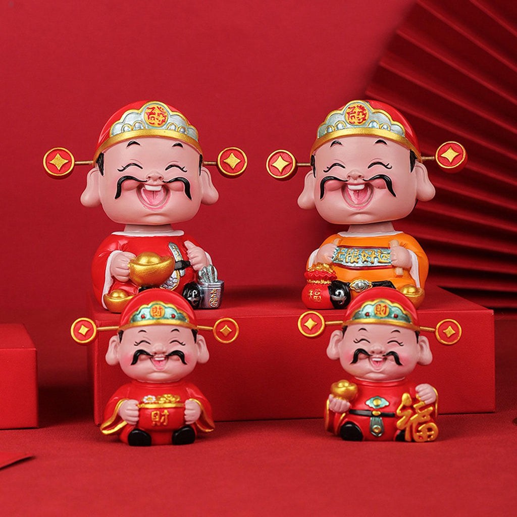 【Vivid Styling】: Cartoon god of fortune figurine, miniature ornament, fine workmanship and vivid details, interesting and creative, great for home decorations.