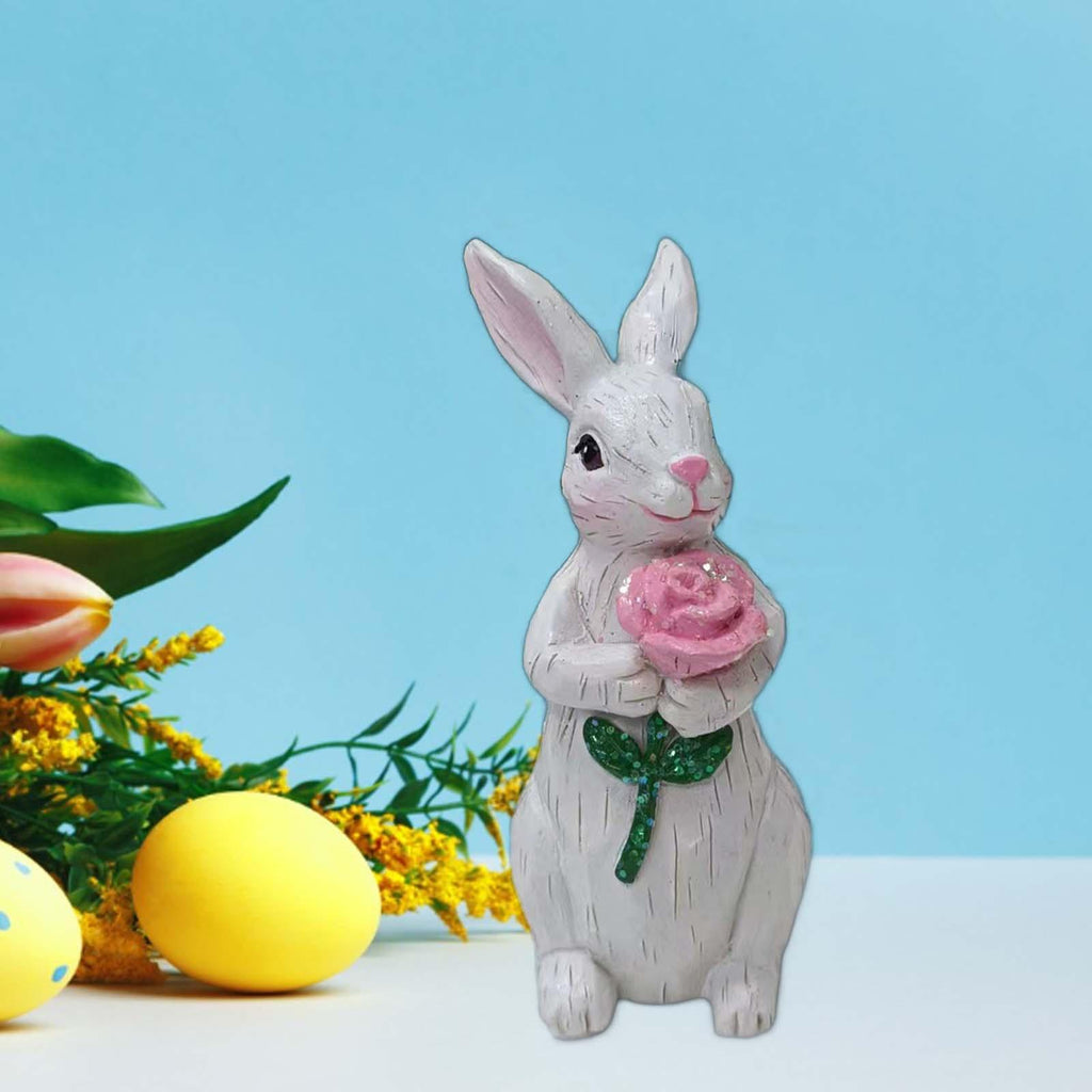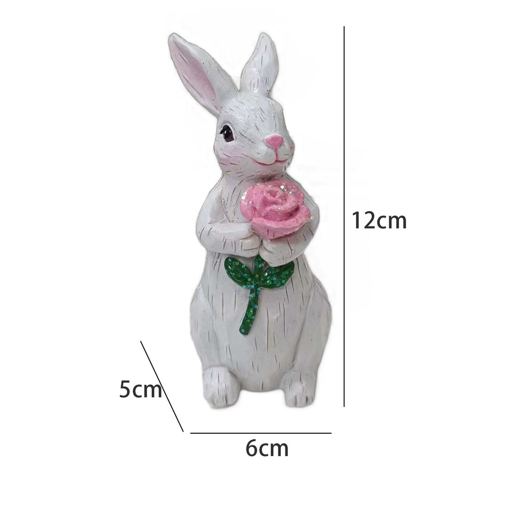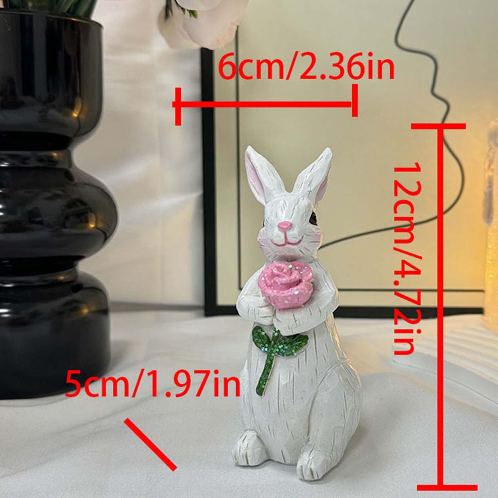【Cute and Charming Decoration】: Known for its craftsmanship, this charming resin bouquet bunny statue will bring you happiness and pleasure. It is the  addition to any home decoration, ideal desktop home decoration piece to brighten up the space. Add a sense of joy.