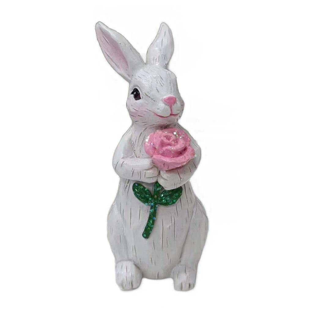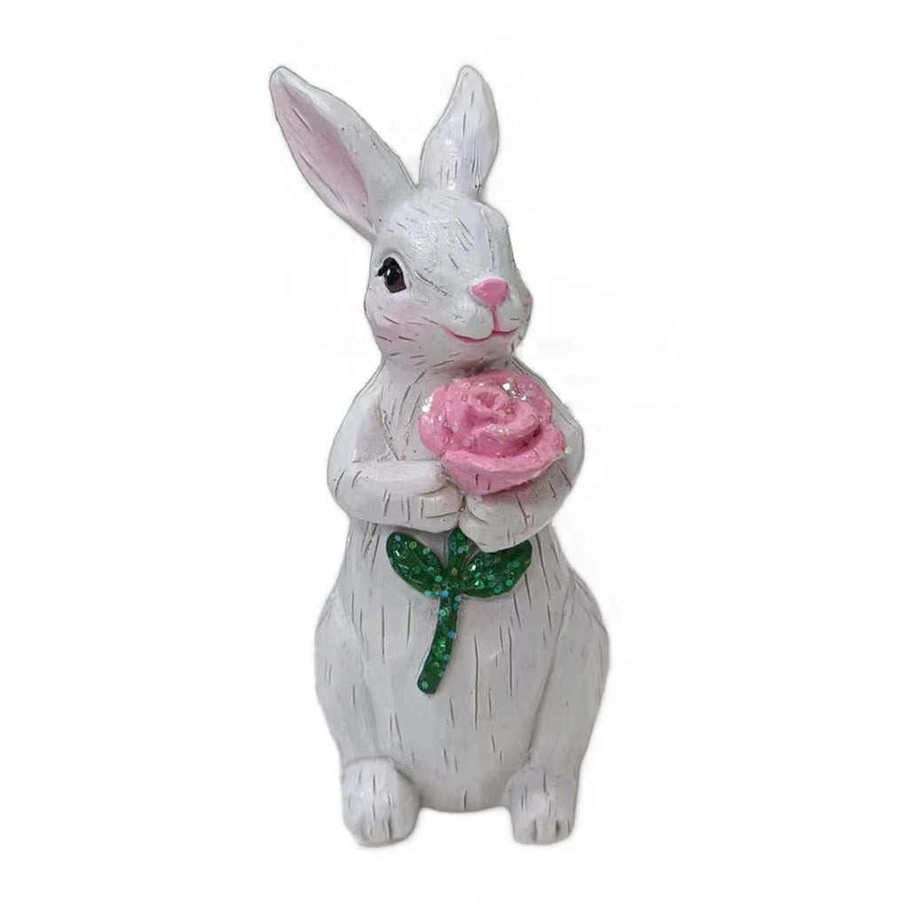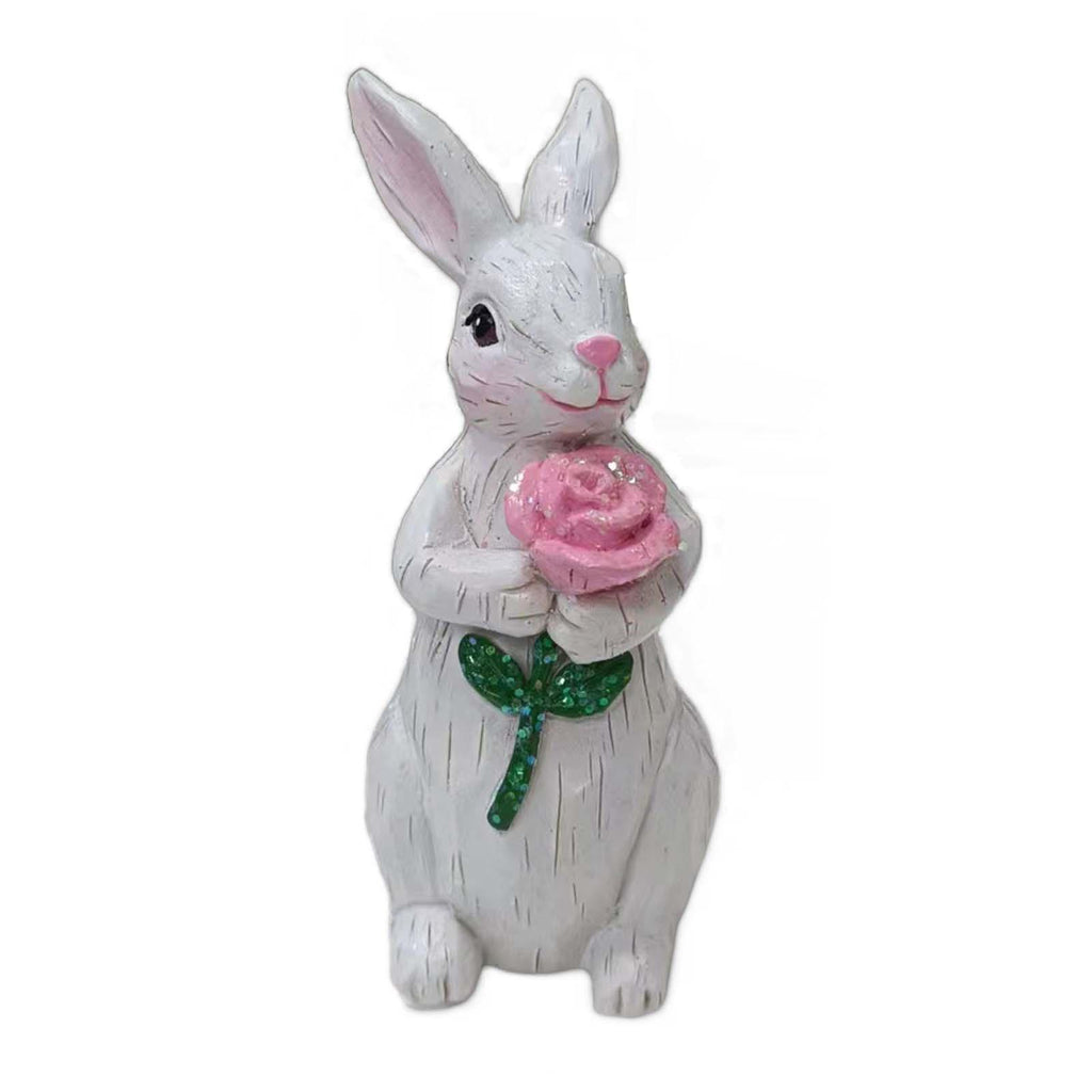 【Cute and Charming Decoration】: Known for its craftsmanship, this charming resin bouquet bunny statue will bring you happiness and pleasure. It is the  addition to any home decoration, ideal desktop home decoration piece to brighten up the space. Add a sense of joy.