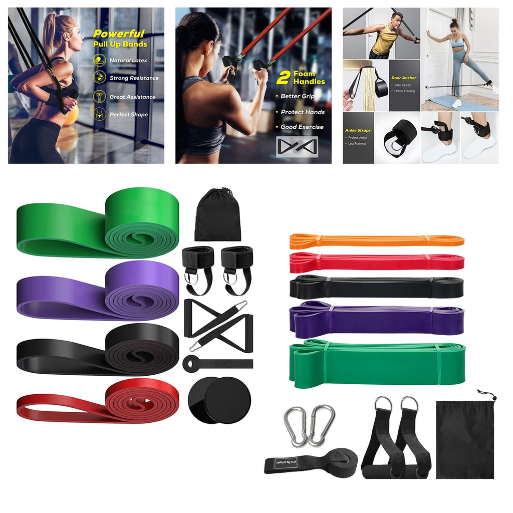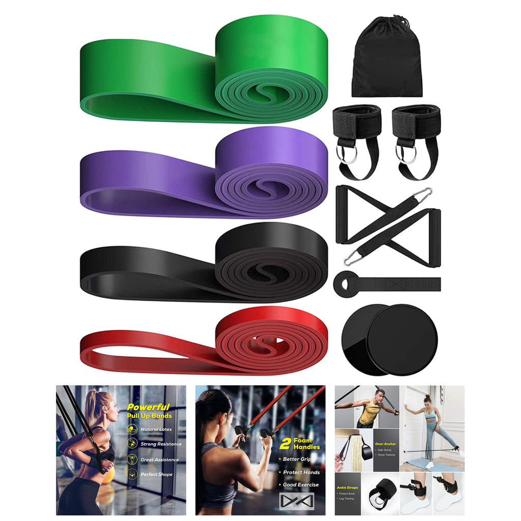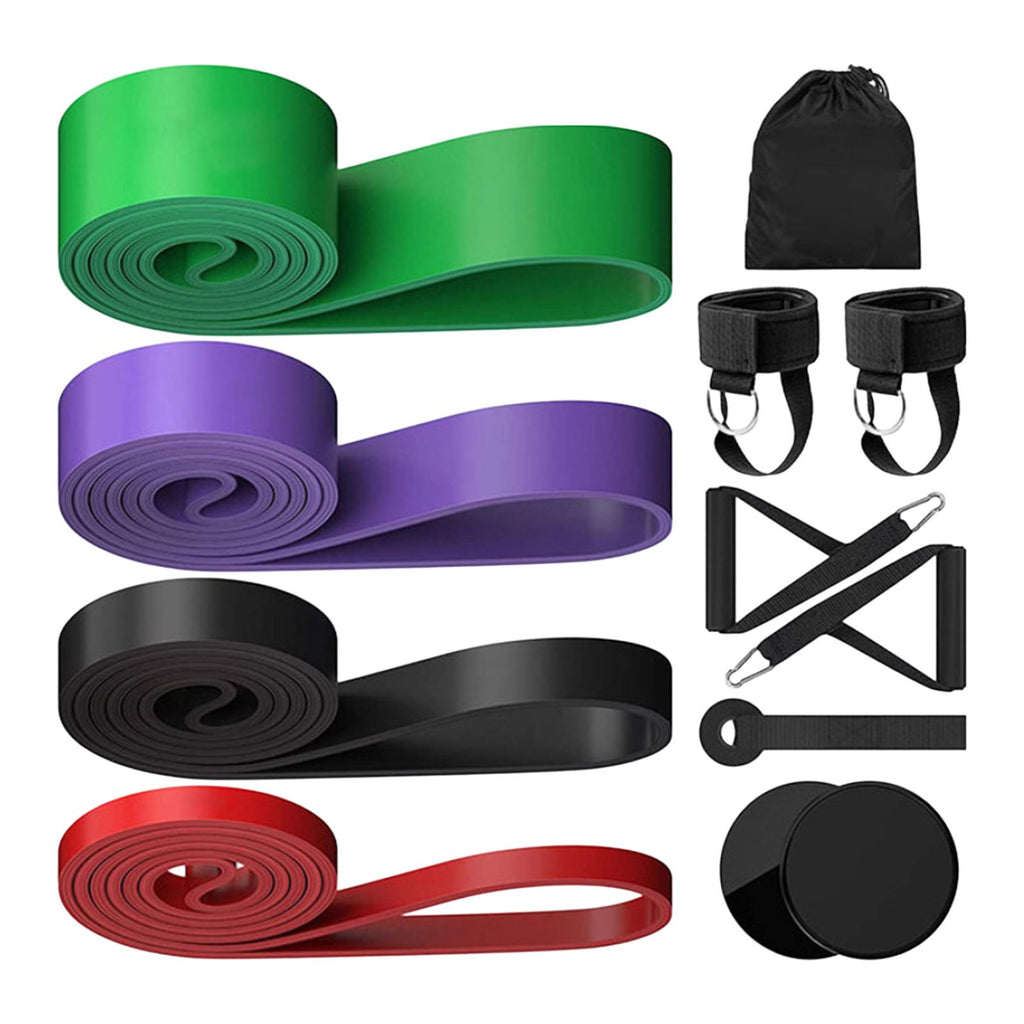 4 Resistance Bands, 2 Ankle Straps, 2 Handles, 1 Door Anchor, 2 Sliding Pads, 1 Storage BagNote:
