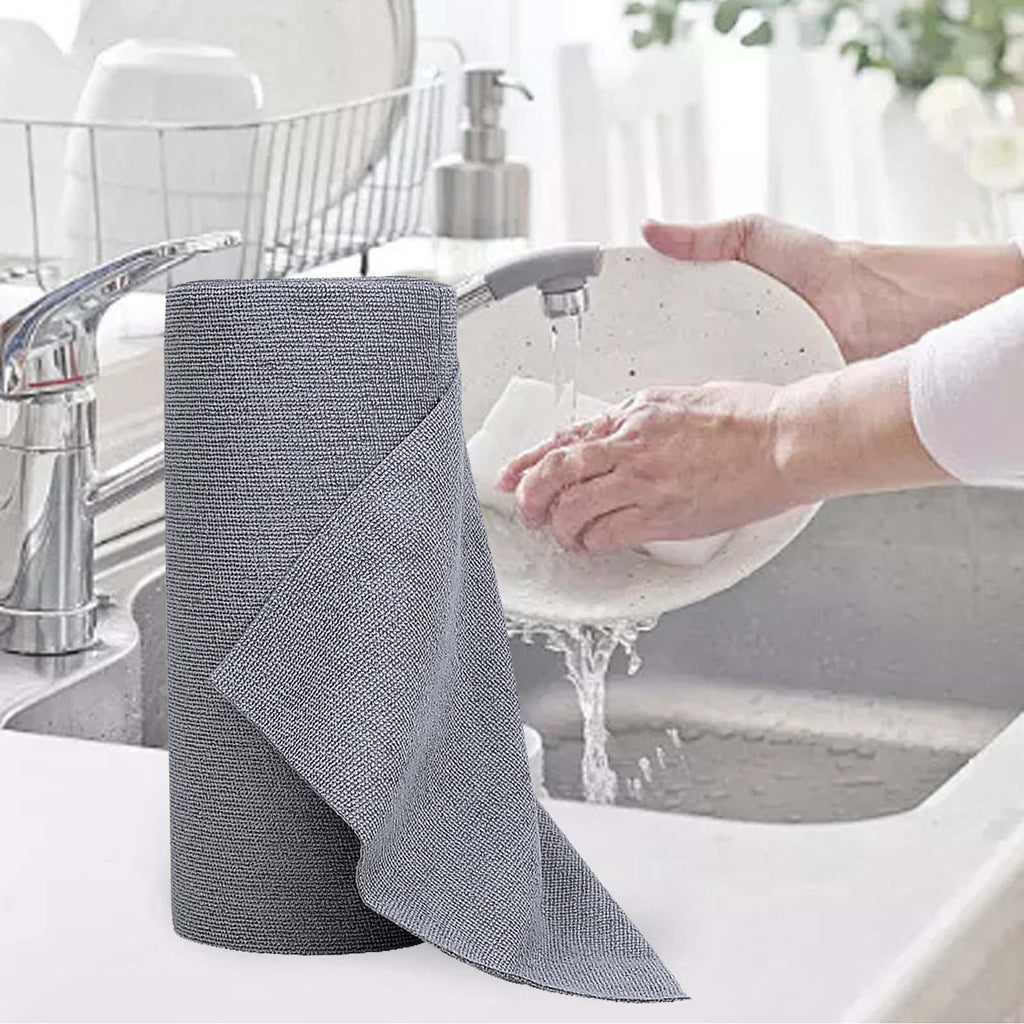 Maxbell Reusable Washable Rag Reusable Microfiber Towels Roll for Dorm Pan Tableware Gray