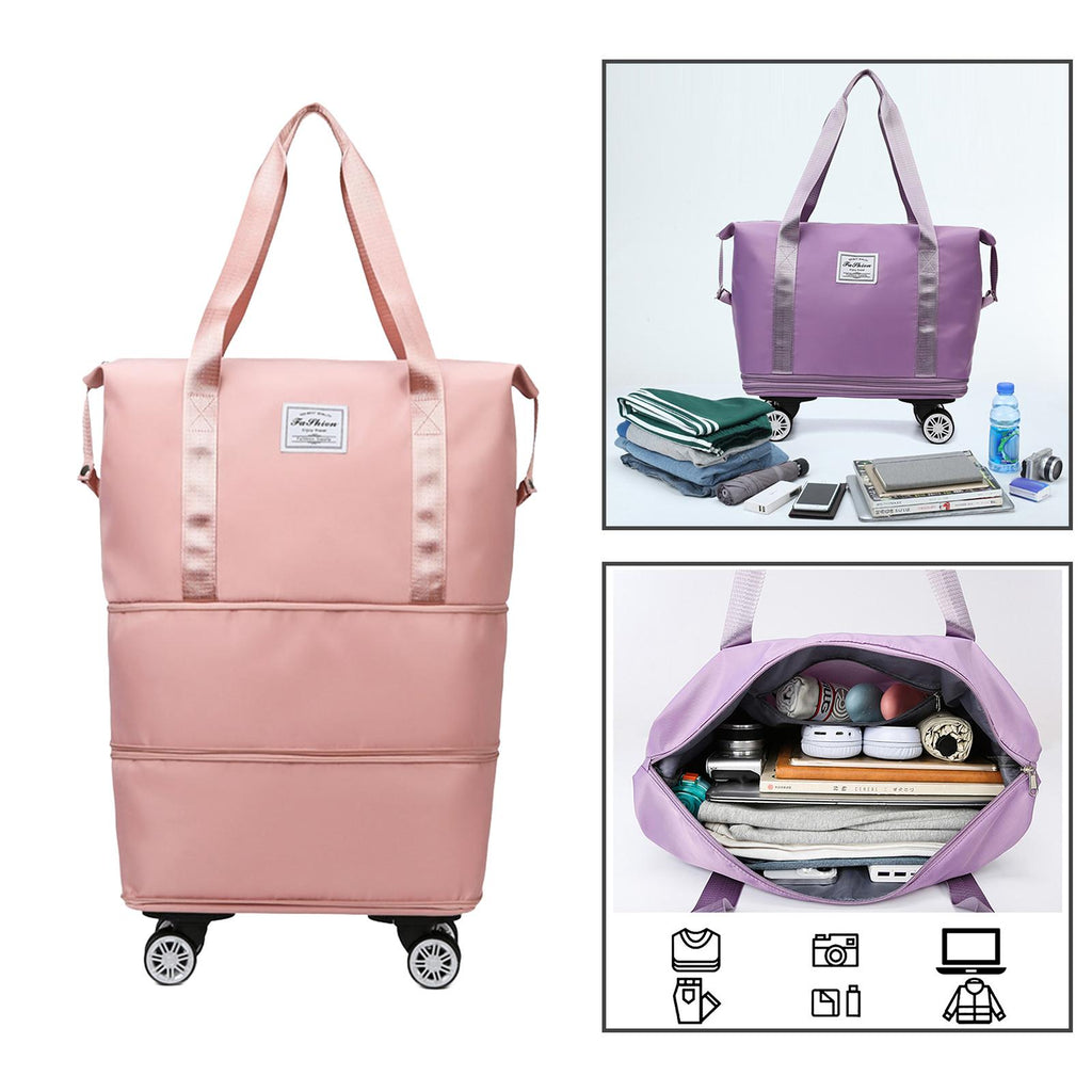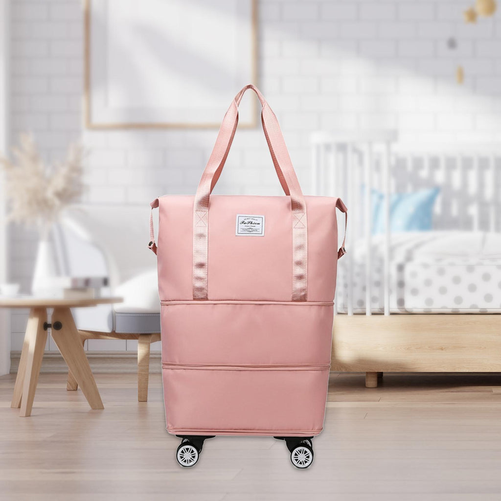 Maxbell Rolling Duffle Bag Apparel Tote Bag Pouch Wheeled for Outddor Sports Fitness pink