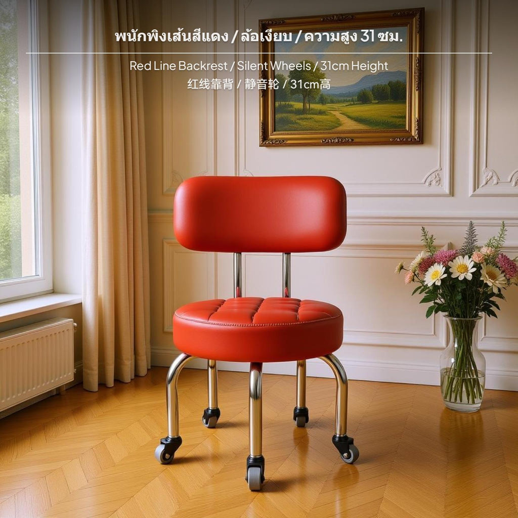 [Mobile Convenience for Home Tasks] This rolling low stool features universal casters and a robust steel frame, allowing easy movement across any floor, making chores like cleaning, grouting, or gardening more efficient.[Comfortable Seating for All Ages] firmly packed foam padding wrapped in soft PU leather delivers a comfortable sitting sensation, suitable for adults, kids, and elders during activities such as resting, playing, or working.[adaptable Design for Multiple Scenarios] The stool comes in a range of stylish forms—round or square seat, with backrest choices—to fit living rooms, children’s playrooms, bedrooms, or as a footrest by the sofa.[Space-Saving and Easy Storage] space-efficient size and multi-height choices allow this small stool to slide under furniture or into corners, helping optimize your home's usable space.[Quiet Movement and Stylish Choices] Some design s include noiseless casters for noise reduction, and timeless black or red finishes harmonize seamlessly with modern home decor. Easy-to-follow assembly guide ensures hassleeffortless setup.