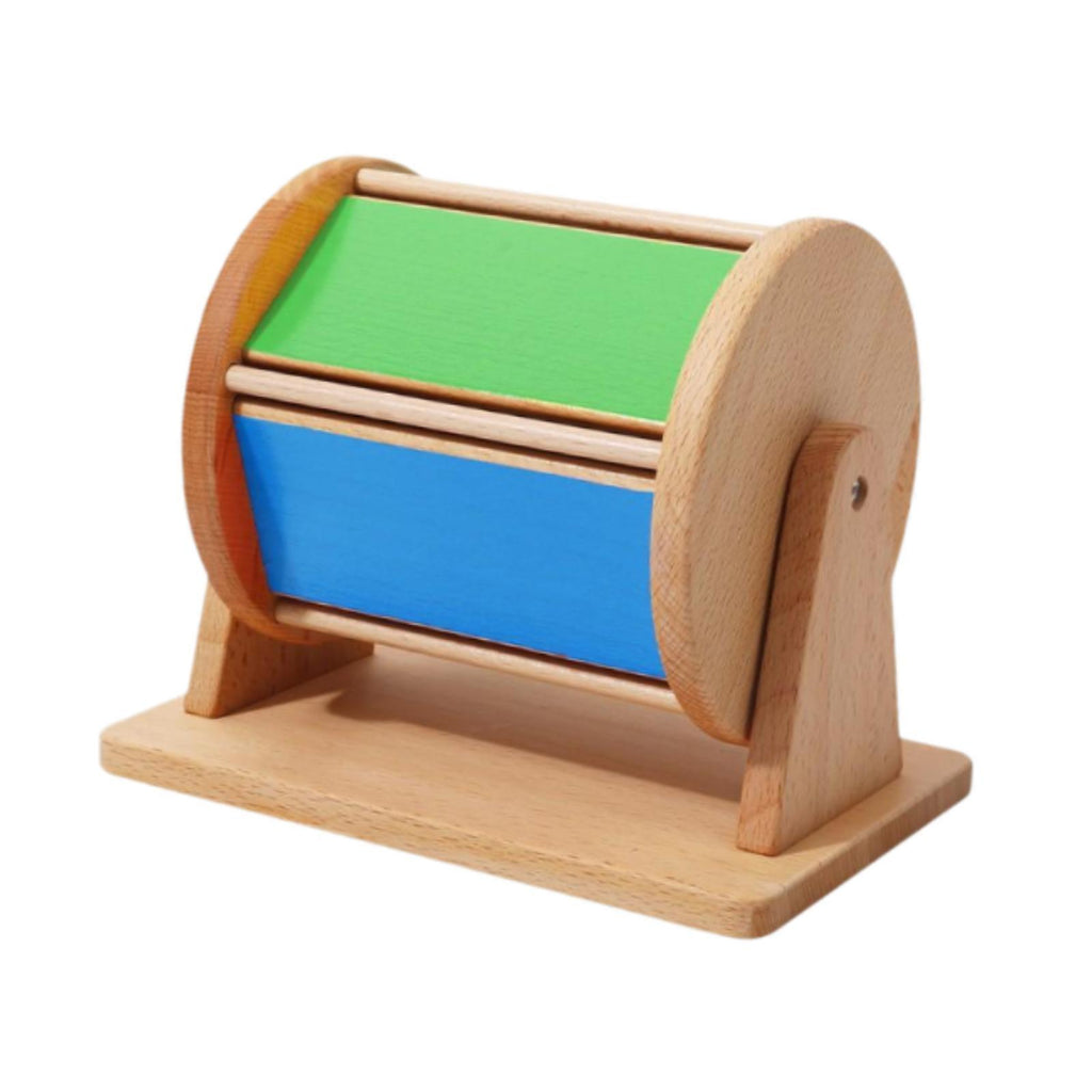 Maxbell Rotating Drum Baby Toy with Mirror Rainbow Wooden Toy for Kids Boys Children